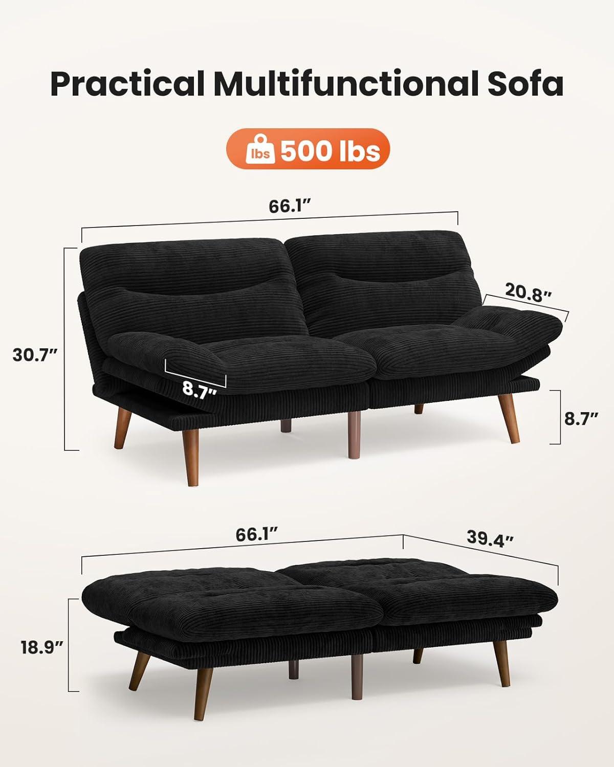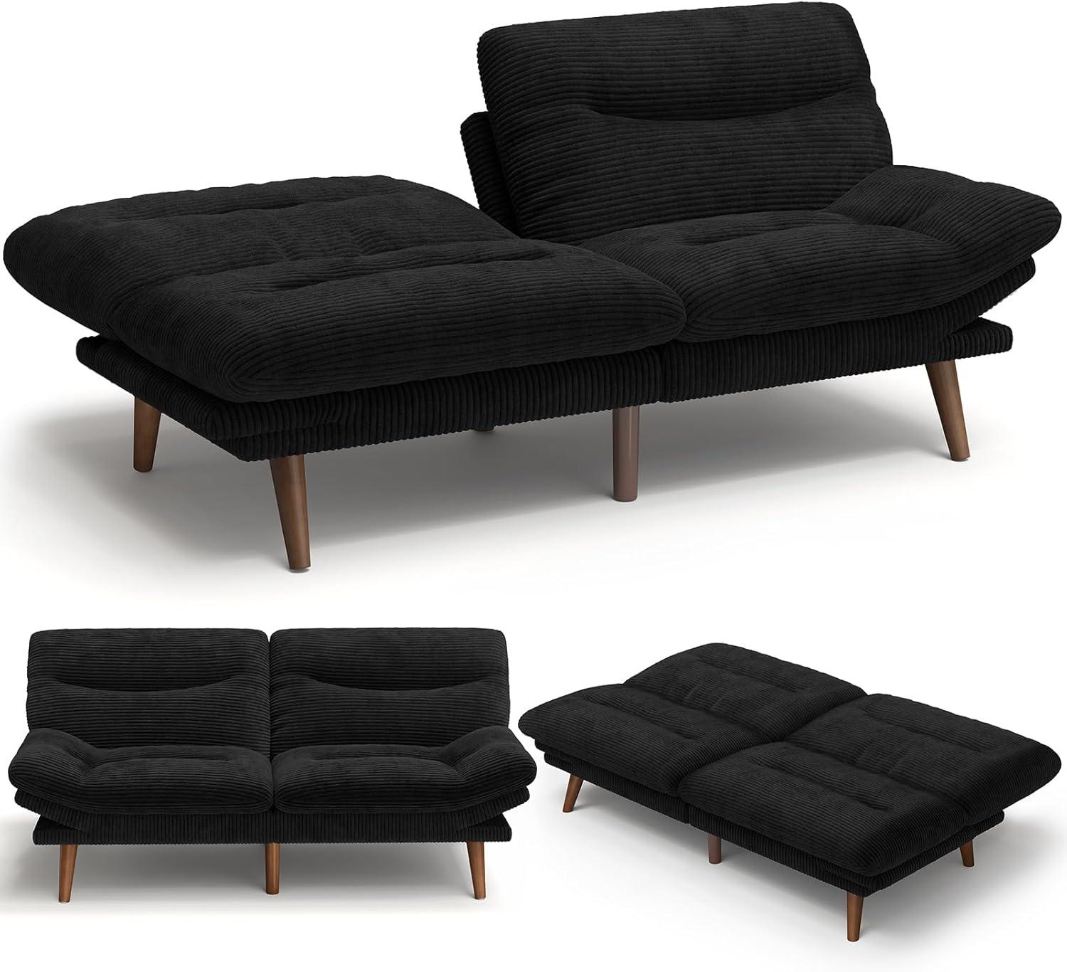 image75 Futon Sofa Bed 3in1 Futon Couch wAdjustable Backrest ampamp Armrests Corduroy Convertible Sleeper Sofa Bed Folding Sleeper Recliner wRemovable Cushion for Apartment Living Room OfficeGreyBlack