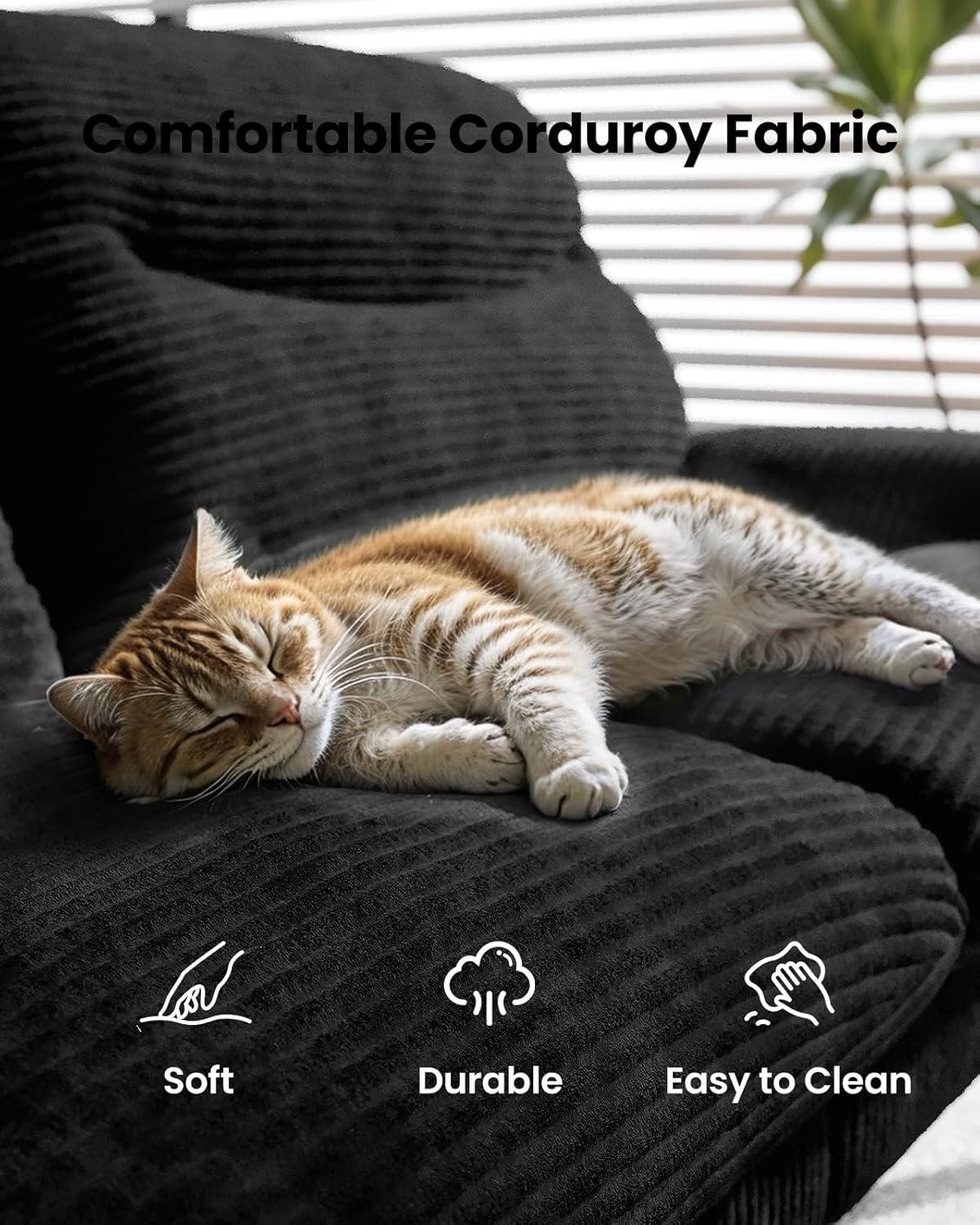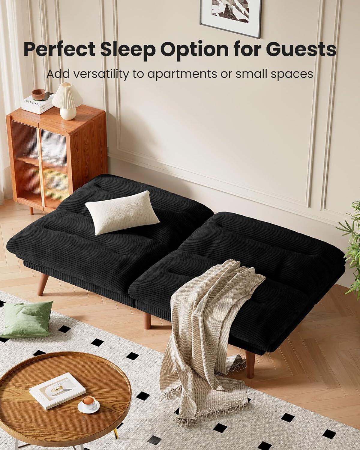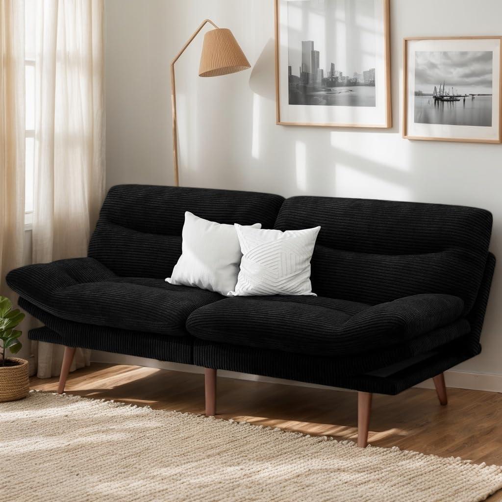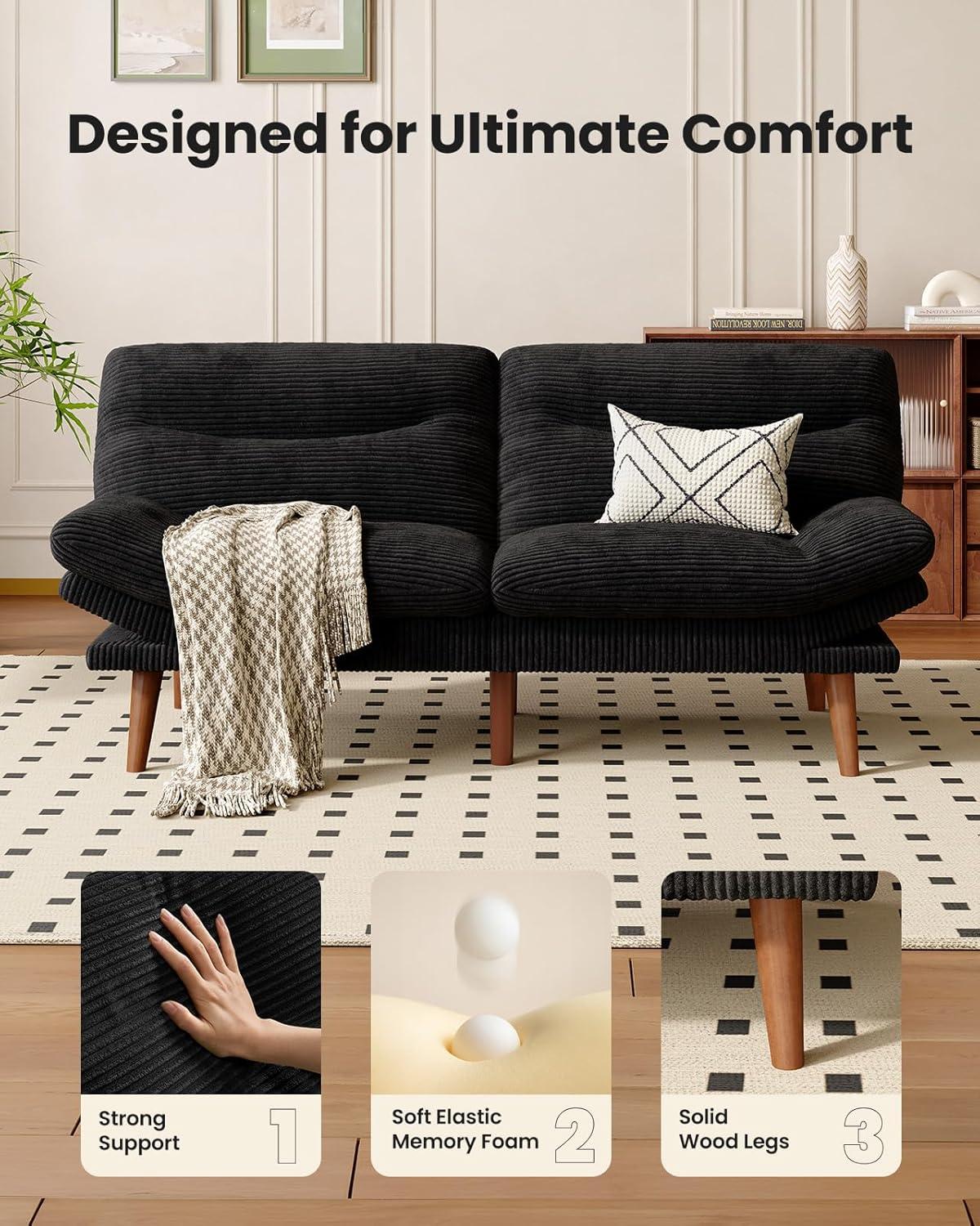 DURABLE CORDUROY FABRIC :Grey futon,covered in soft,durable fabric,this corduroy sofa has a unique pattern and texture.the loveseat sofa has a clear and rounded velvet-like surface. additionally, corduroy couch is thick and wear-resistant, making it an excellent choice for those who demand comfort and durability