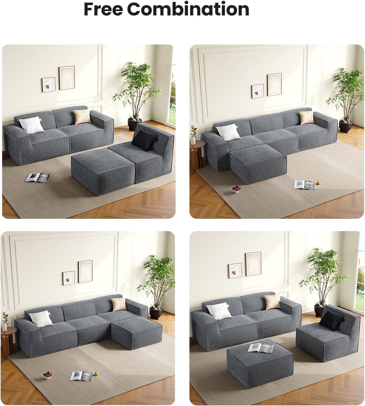 Unique Corduroy Fabric: Upholstered in smooth, breathable corduroy, this Cloud Sectional Couch features an L-shaped chaise sofa design that blends comfort with quiet elegance. The fine ribbed texture adds visual warmth and provides a luxuriously soft, inviting seating experience.