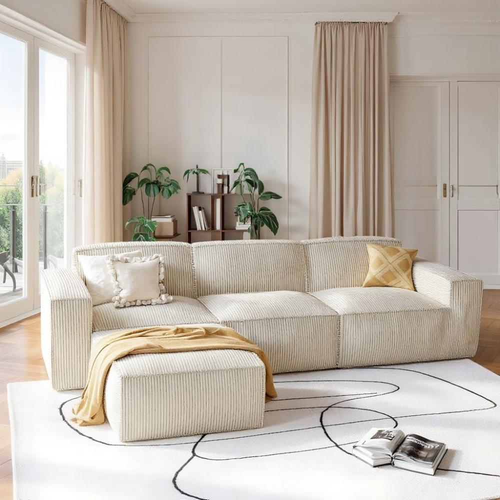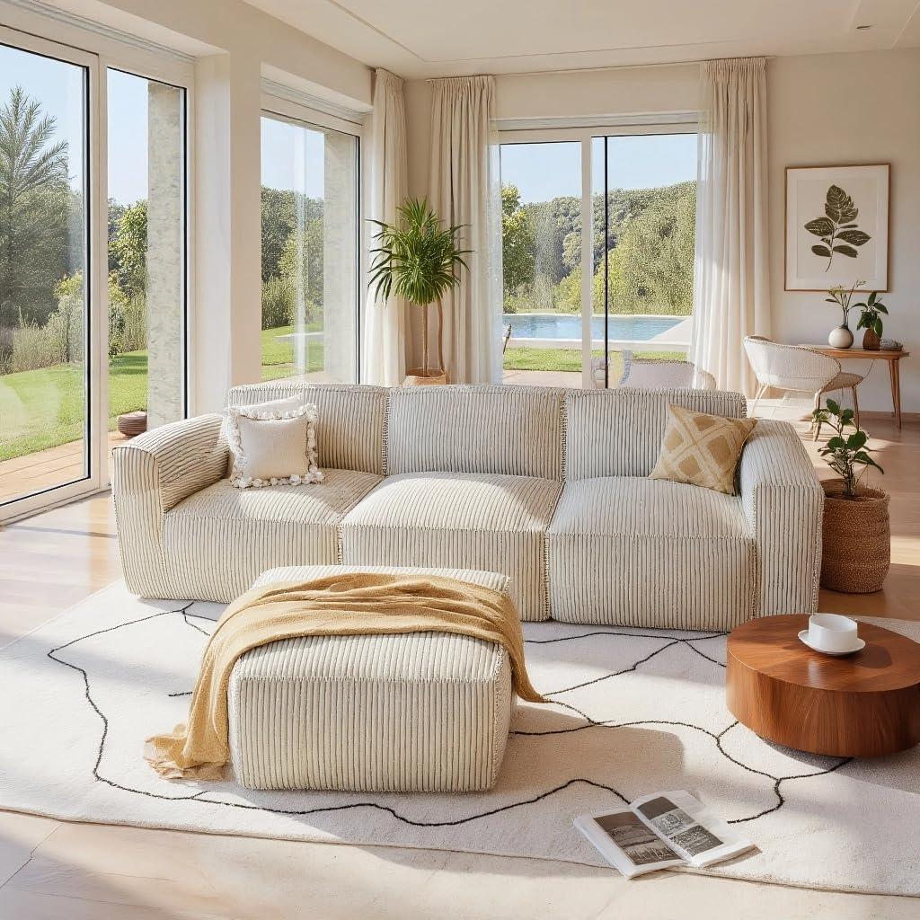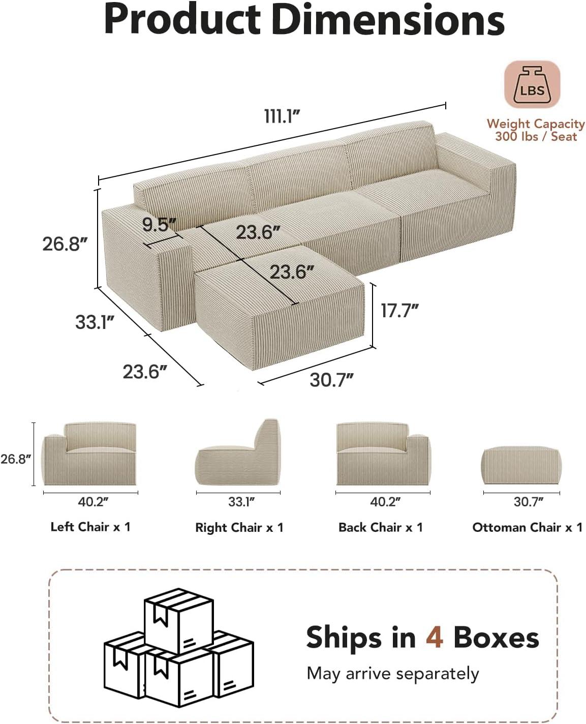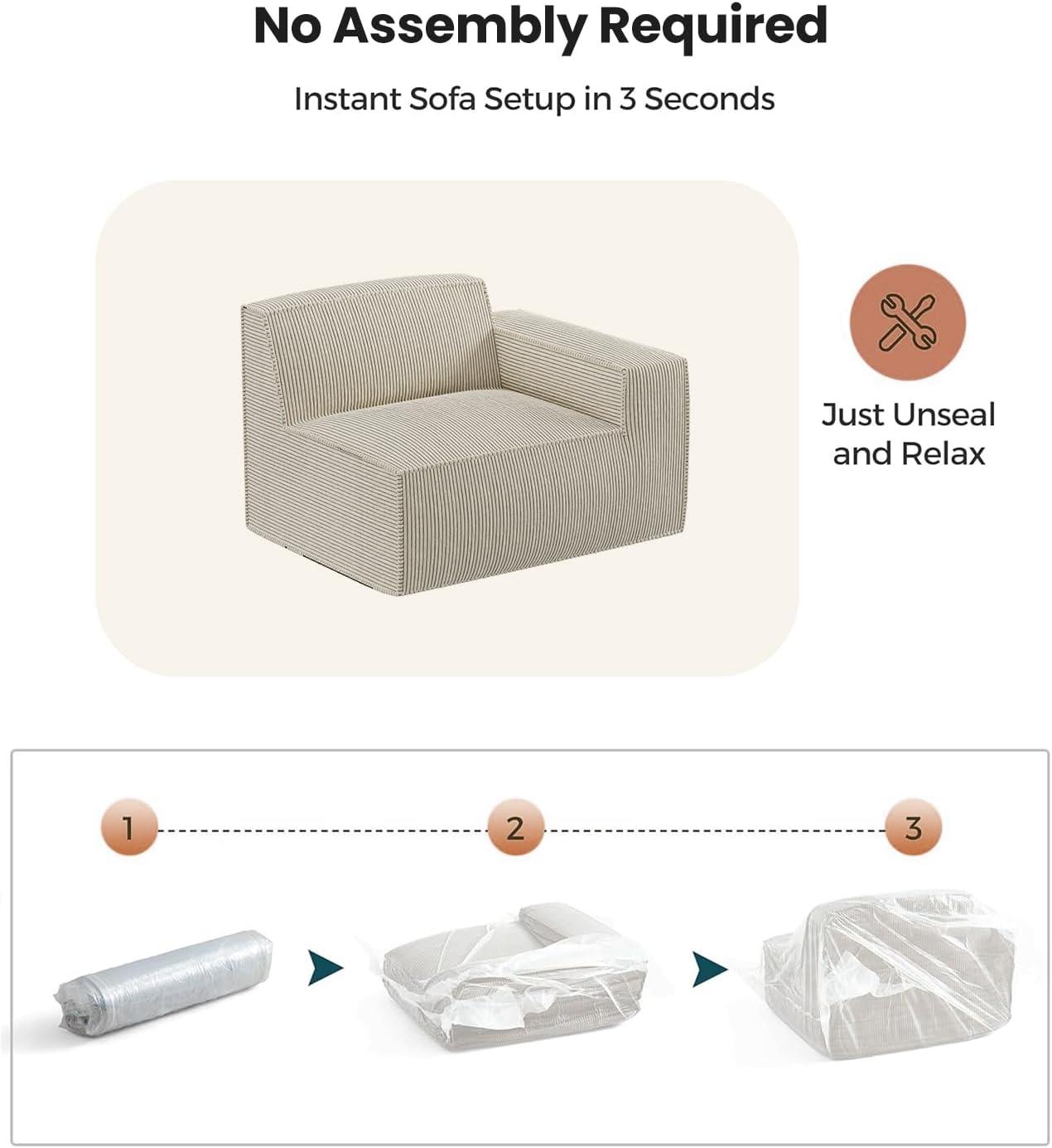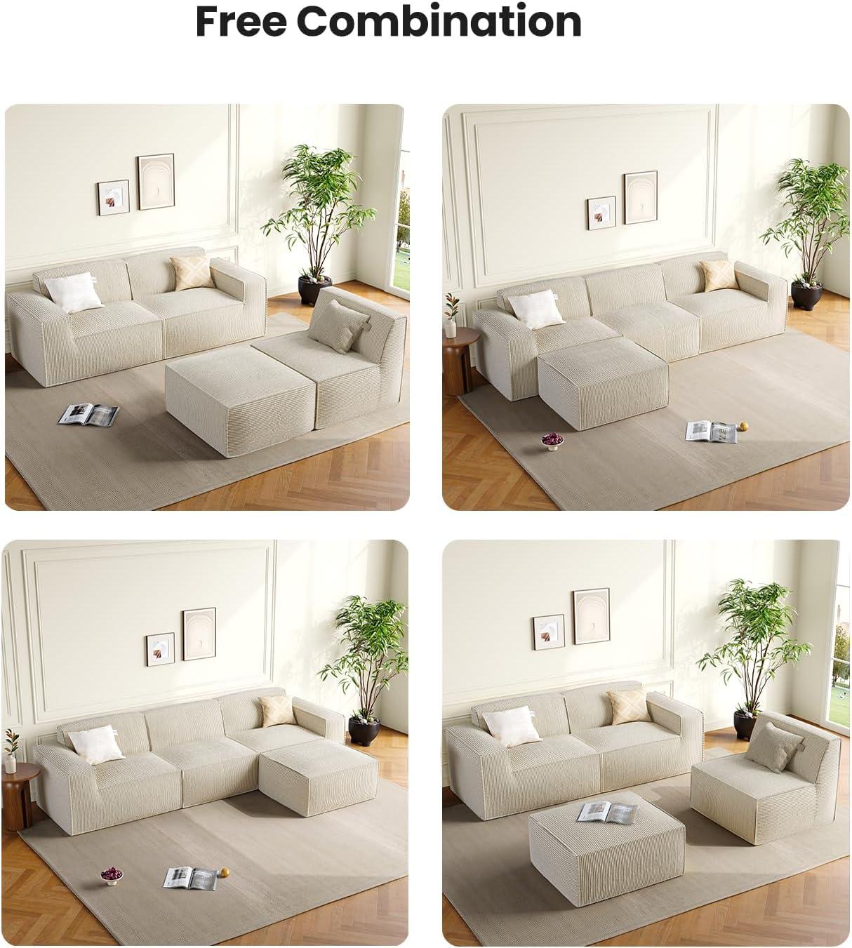 Unique Corduroy Fabric: Upholstered in smooth, breathable corduroy, this Cloud Sectional Couch features an L-shaped chaise sofa design that blends comfort with quiet elegance. The fine ribbed texture adds visual warmth and provides a luxuriously soft, inviting seating experience.