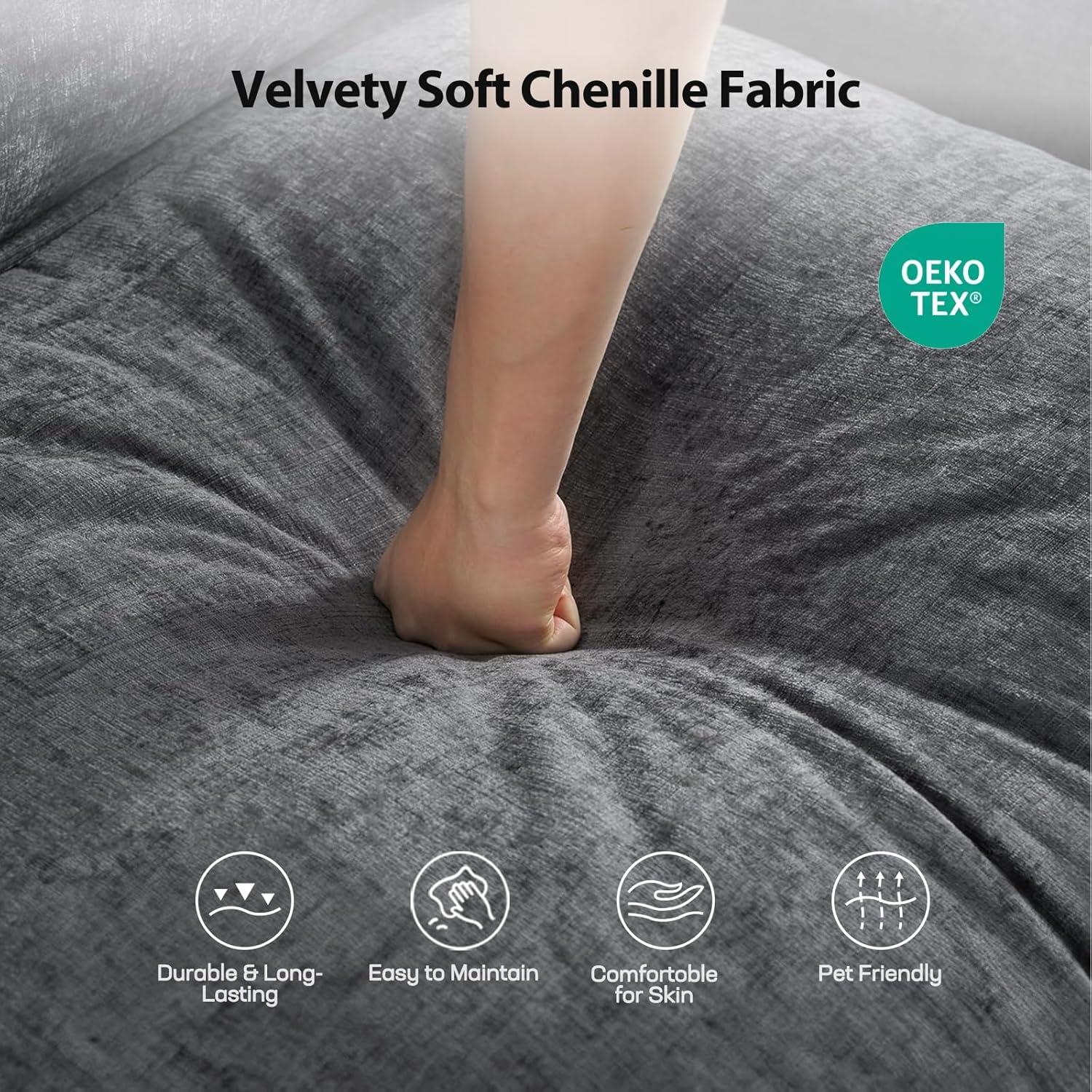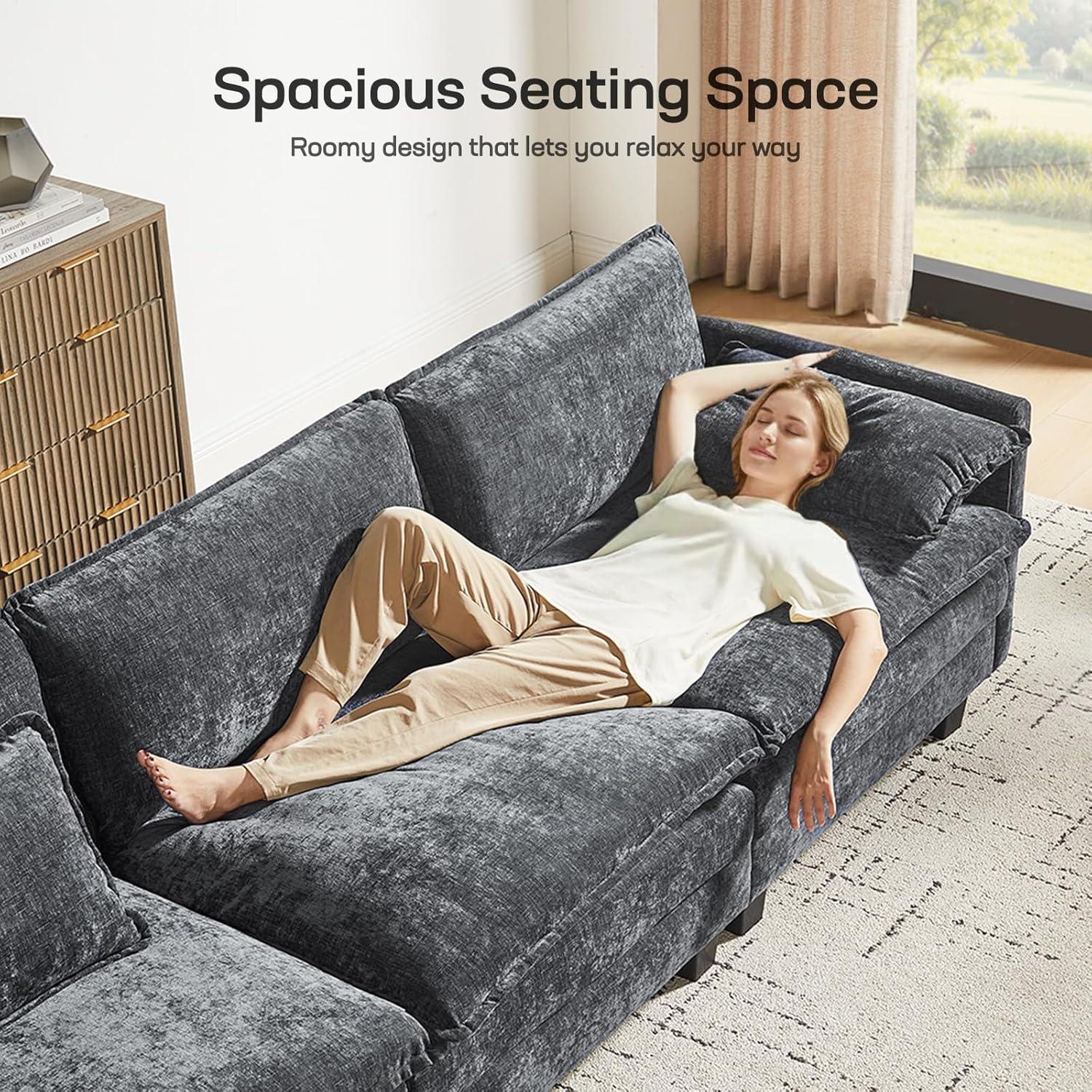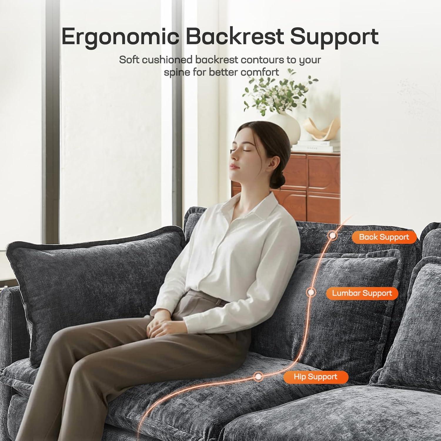 Soft Chenille Fabric & Durable Frame: This upholstered sectional couch is crafted from premium, skin-friendly chenille fabric, offers excellent durability, wear resistance, and is perfect for pet owners. The sturdy solid wood frame with no-sag steel sinuous springs, supports up to 350 lbs per seat, ensuring lasting strength and dependability, and providing an elegant finish to any living room.