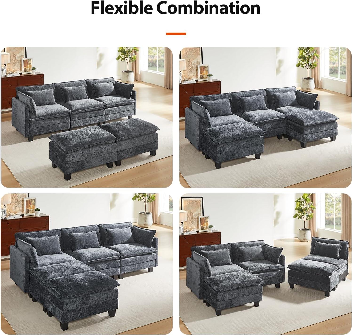Flexible Arrangements: This modular sectional sofa offers a versatile design, allowing you to customize the layout to perfectly fit your space. The movable ottomans and accent chairs can be easily rearranged, while hook-and-loop fasteners and secure screw-on connections ensure each piece stays stable for effortless reconfiguration and lasting durability.