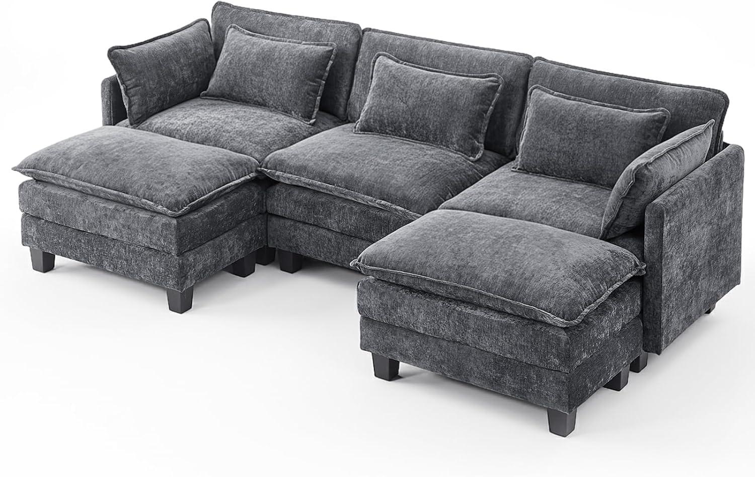 Cloud-Like Comfort: Sink into softness with this cloud couch, designed with 13-inch double-layer thickened cushions for a cloud-like seating experience. The first layer combines plush cotton and high-resilience foam, while the second layer features pocket springs and high-density sponge for enhanced support. Designed for ultimate relaxation, this U-shaped modular sofa is perfect whether you're lounging alone or hosting guests.