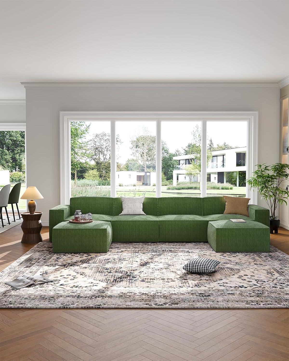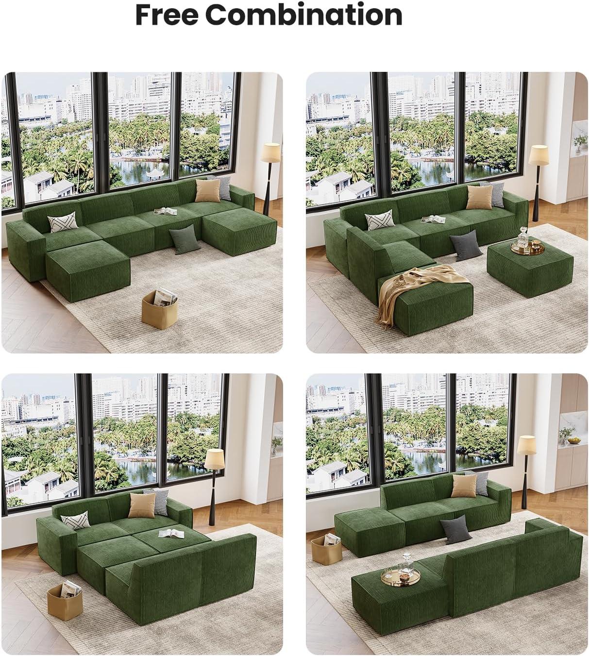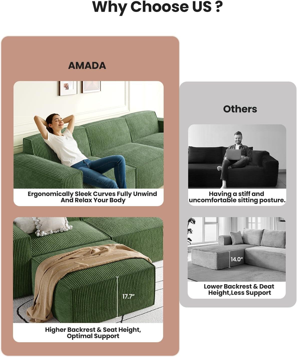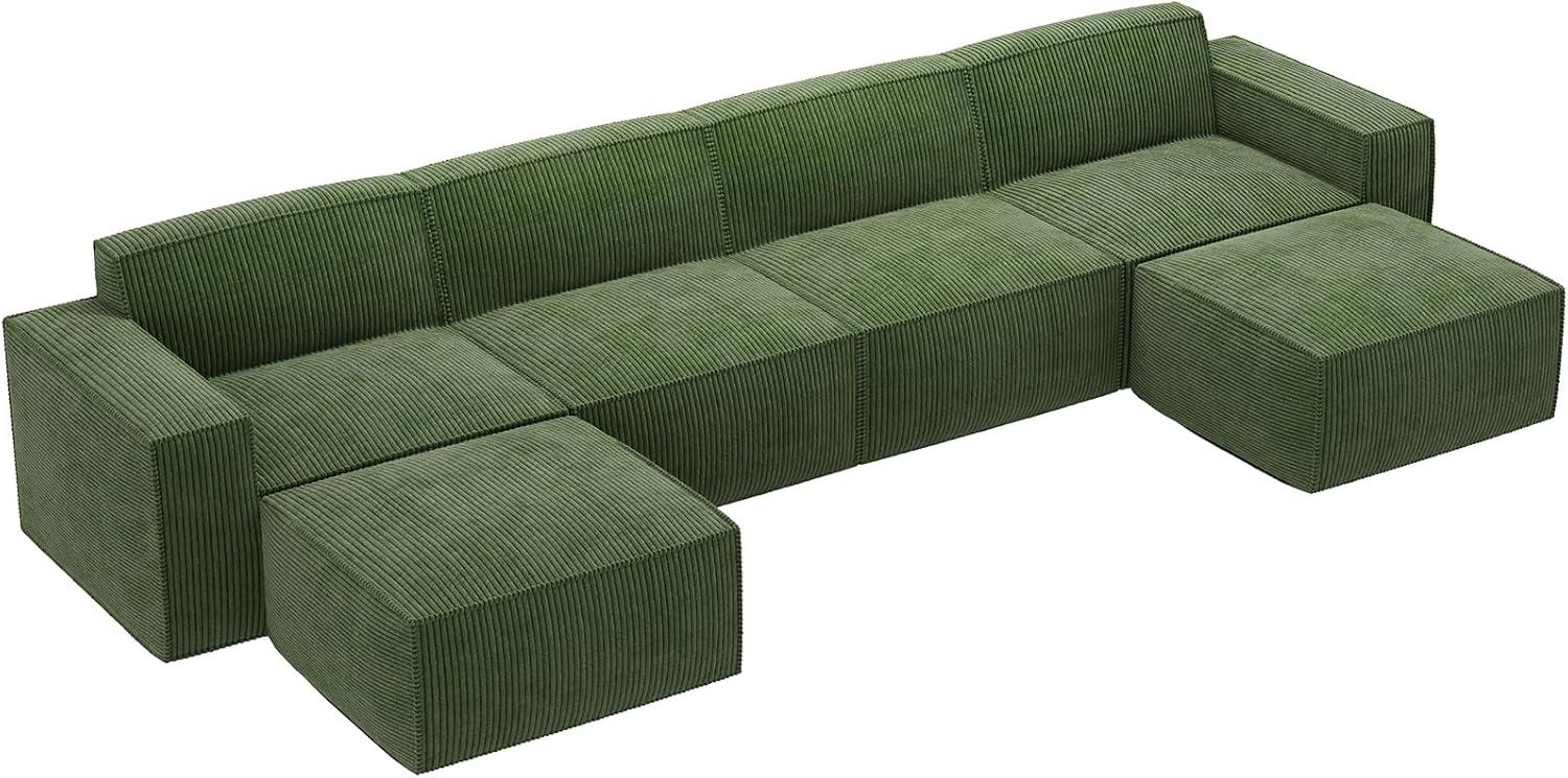 Amada 111″ L Shaped Sofa Modular, Corduroy Clopud Couches with Deep Seats &High-Back, Upholstered Couches for Living Room Bedroom with Ottoman, No Assembly Required(2-Seater&1 Ottoman,Green)(Green)