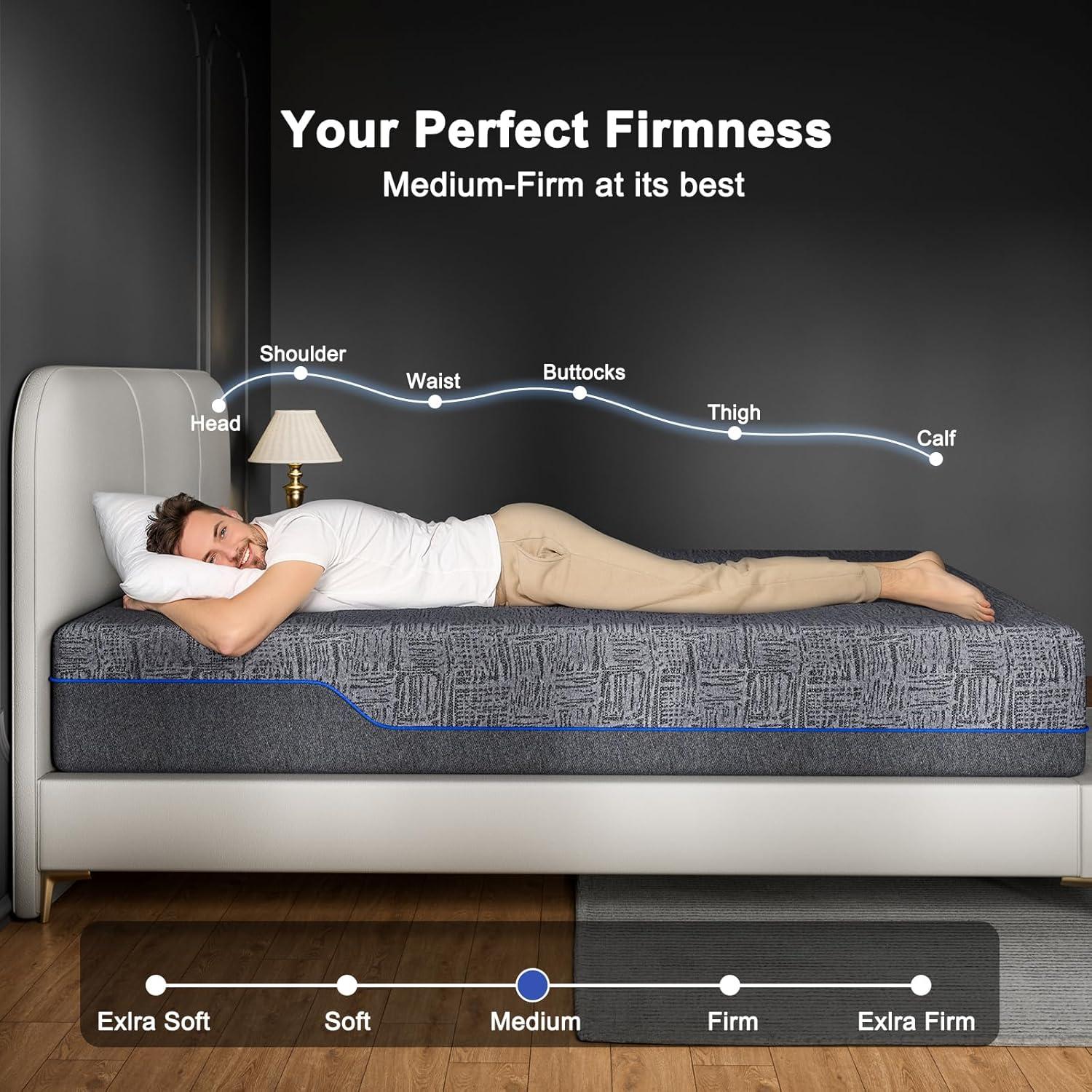 Medium-Firm Plus Support: Our queen mattress 12 inch offers a medium-firm plus feel, featuring 3 lbs of high-density foam, providing excellent support and protecting your spine. Whether you sleep on your side, back, or stomach, you’ll enjoy a restful, supportive sleep with our memory foam mattress.