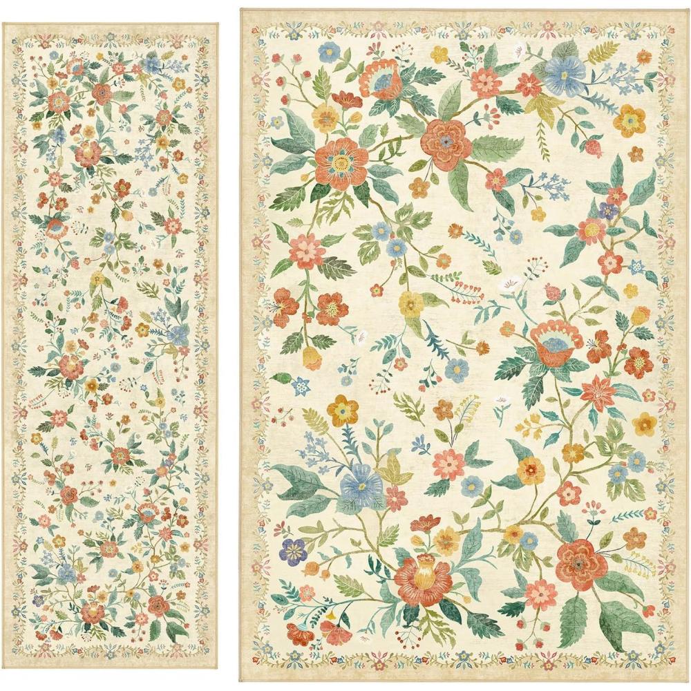Amada 2x6 Washable Runner Rug, 6x9 Area Rug with Durable Edge Binding, Boho Floral Pattern, Soft Long Entryway Runner Rugs for Bedroom & Hallway Living Room