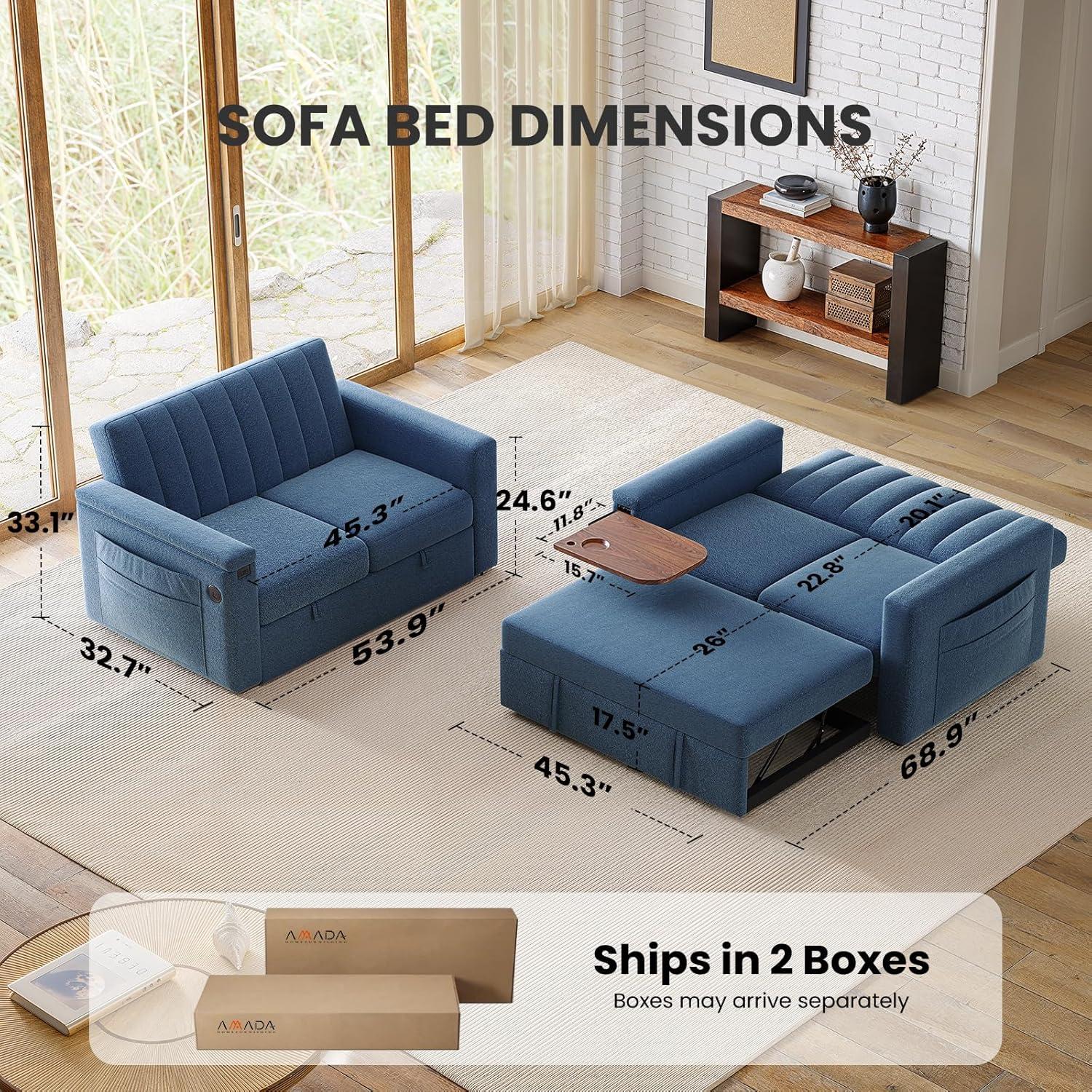 Amada 3 in 1 Sleeper Sofa Bed,Pull Out Couch with Side Table, Convertible Loveseat with Adjustable Backrest,Chaise Lounge with USB Ports & Side Pockets for Living Room, 69'' Pull Out Sofa Bed(Beige)(Dark Blue)
