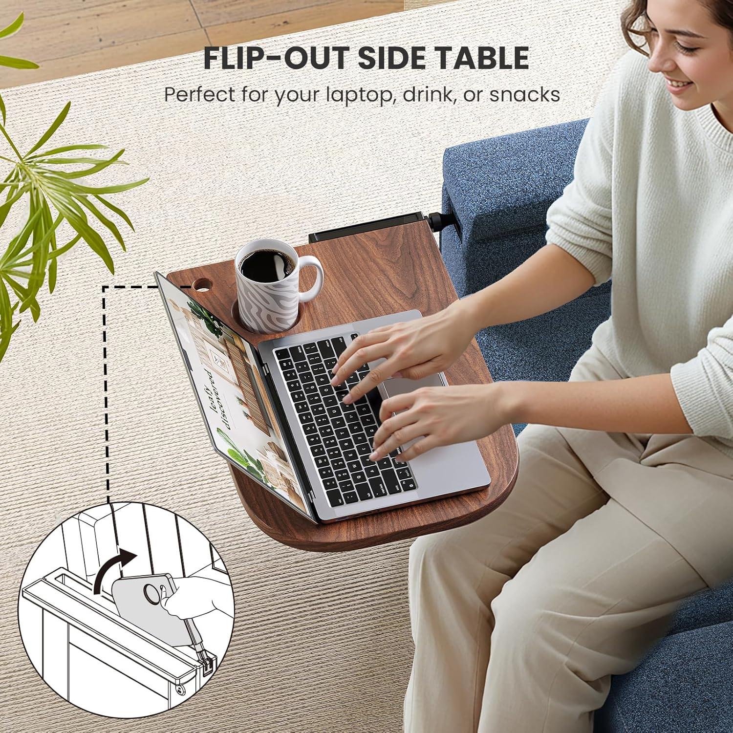 𝐅𝐥𝐢𝐩-𝐎𝐮𝐭 𝐒𝐢𝐝𝐞 𝐓𝐚𝐛𝐥𝐞:3 in 1 sleeper sofa couch bed,maximize your living space with the hidden side table (15.75″ W x 11.81″ D) that tucks into the armrest of this pull-out couch. With a built-in cup holder, the unique design allows you to slide the table out for your laptop, phone, snacks, or drinks. Simply stow the table away when not in use to keep your living area neat and organized.