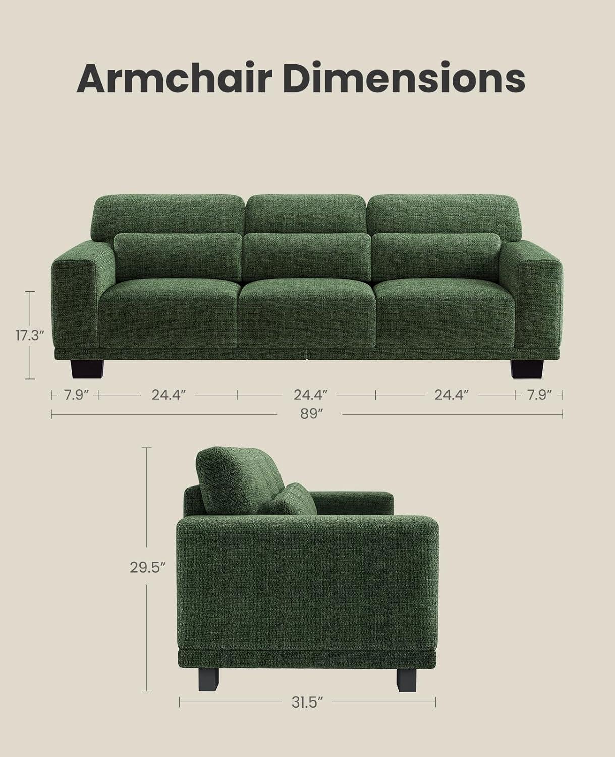 【Spacious and Comfortable Design】With a generous size of 89″ wide and 31.5″ deep, the 3 Seater Couch brings you a luxurious space experience. Its flexible layout is perfectly suited for living rooms, bedrooms and other spaces, providing plenty of places to relax and lounge.