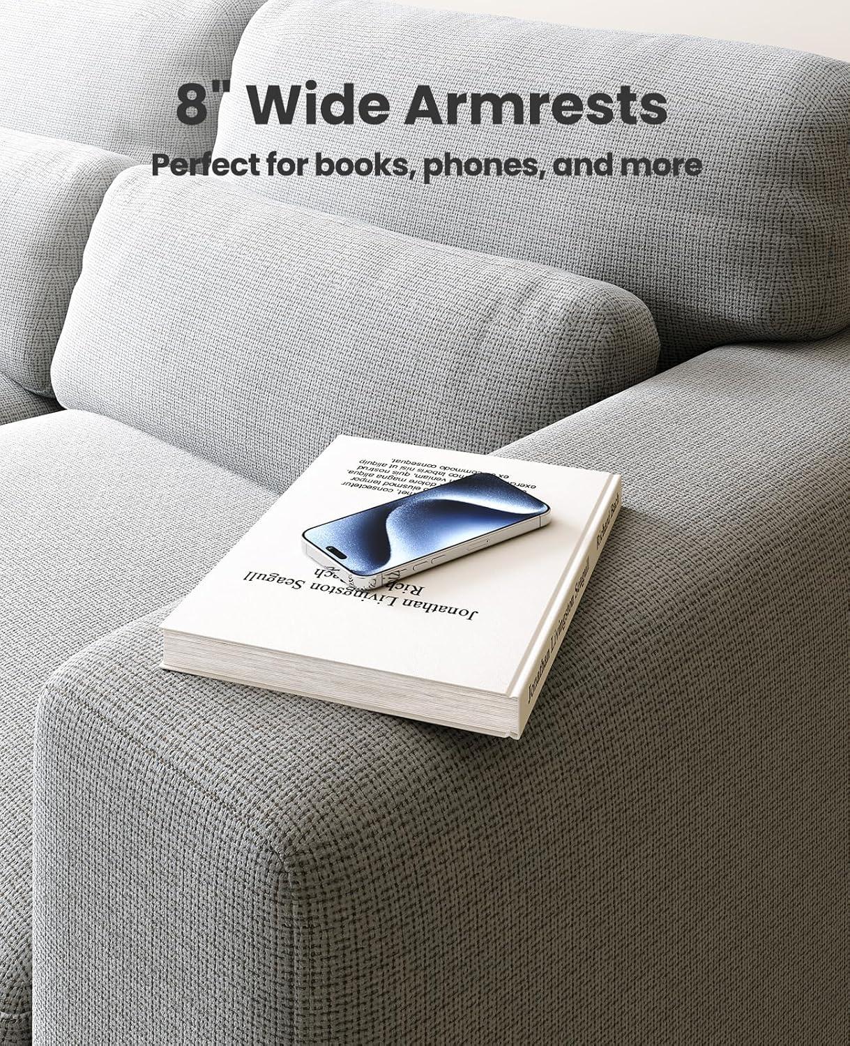 【Extra Padded Cushions&Practical Wide Armrests】 Equipped with 8-inch wide armrests, the washable sofa is convenient for storing essentials such as cell phones, remote controls or teacups, making your space more tidy. Thickened cushion design, the ultimate in bringing a comfortable experience, allowing you to relax to your heart's content.