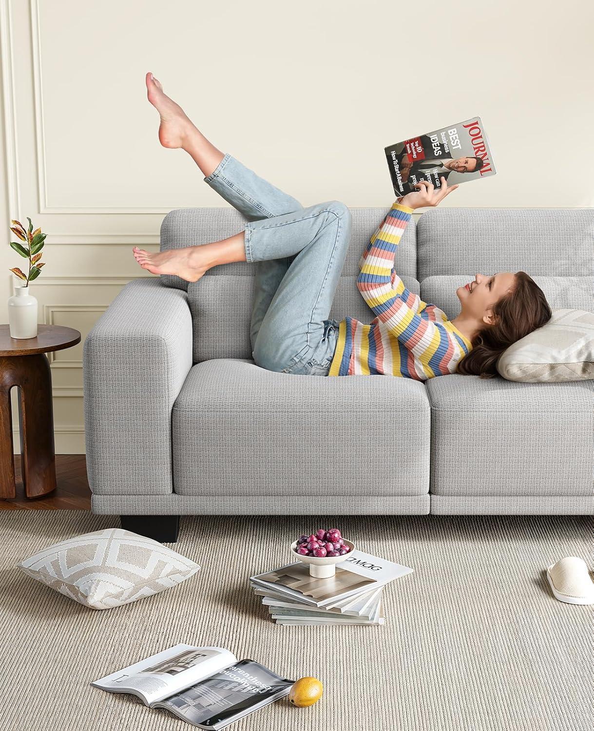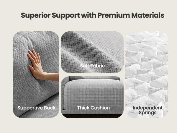 【Premium Linen Fabric&Independent Spring】Using high quality linen fabric with 50% thickened foam cushion, the modern sofa delivers a soft and comfortable sitting experience. Individually wrapped pocket springs provide excellent support and remain comfortable even after long hours of lounging.