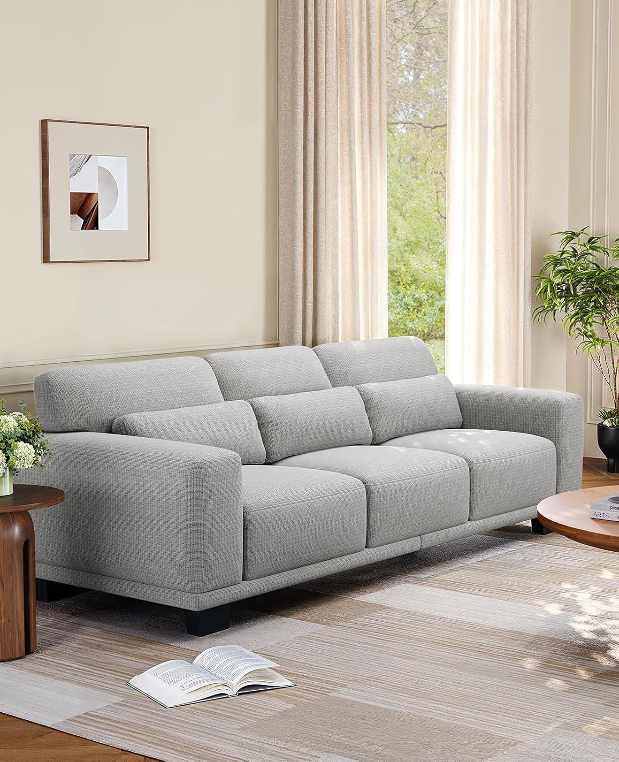 Amada 89" Sofa, 3 Seater Couch Sofa for Living Room, Modern Sofa with Wide Armrests & Deep Seats, Comfy Couch with Removable Washable Covers & Linen Fabric, Easy Assembly (Blue, 3 Seater)(Grey)