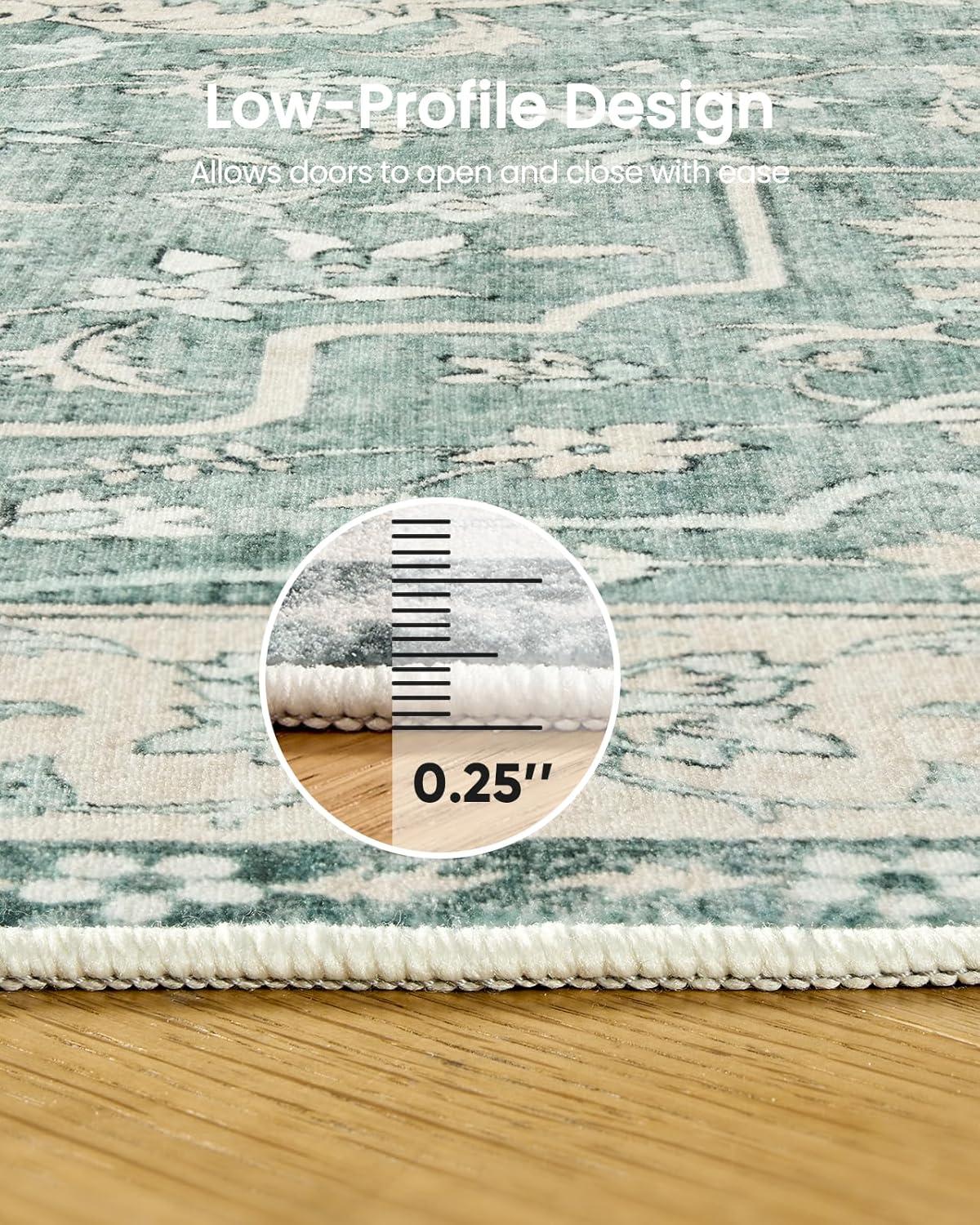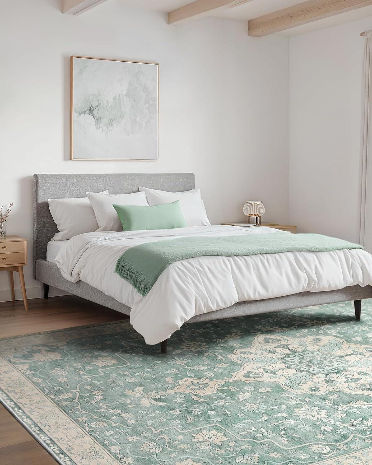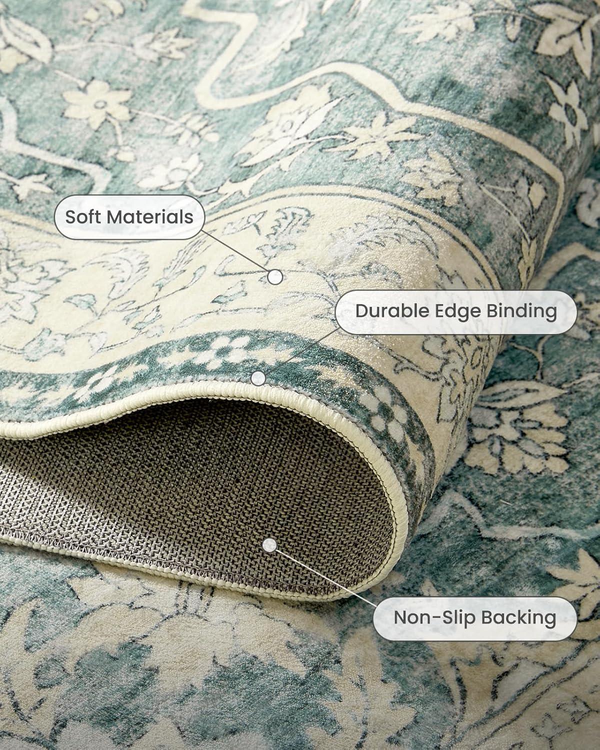 Amada 8x10 Area Rugs, Non-Slip Washable Rug with Low Profile, Durable Bound Edge, Soft Large Vintage Rug for Living Room, Bedroom, Dinning Room, Home Office(Green)