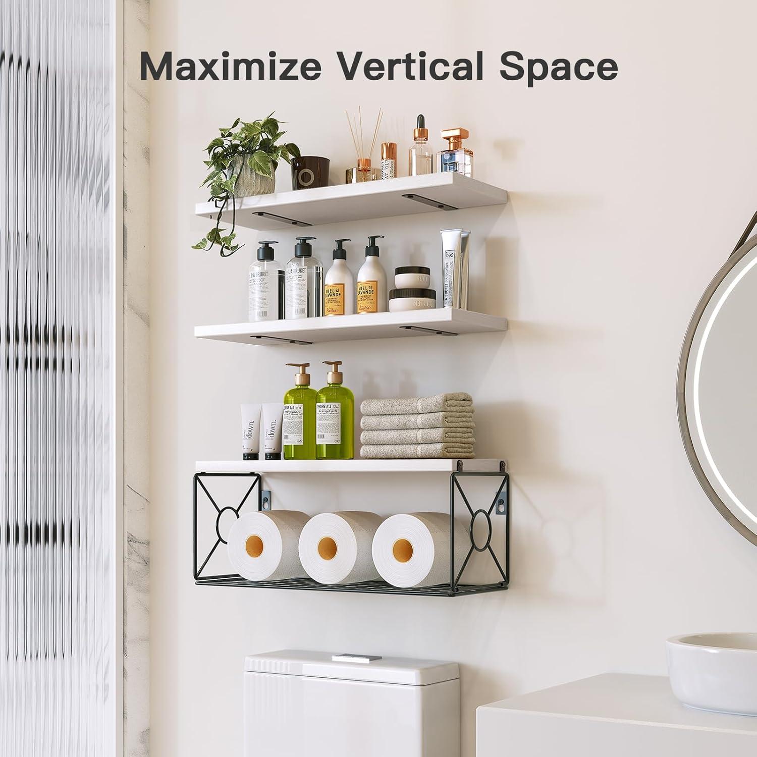 Maximize Bathroom Space: Whether you need to organize your bathroom, kitchen, bedroom, living room, or home office, these floating shelves with storage basket provide smart and stylish storage. Arrange those floating shelves as needed vertically on the wall or configure them as a corner shelf to fit your needs.