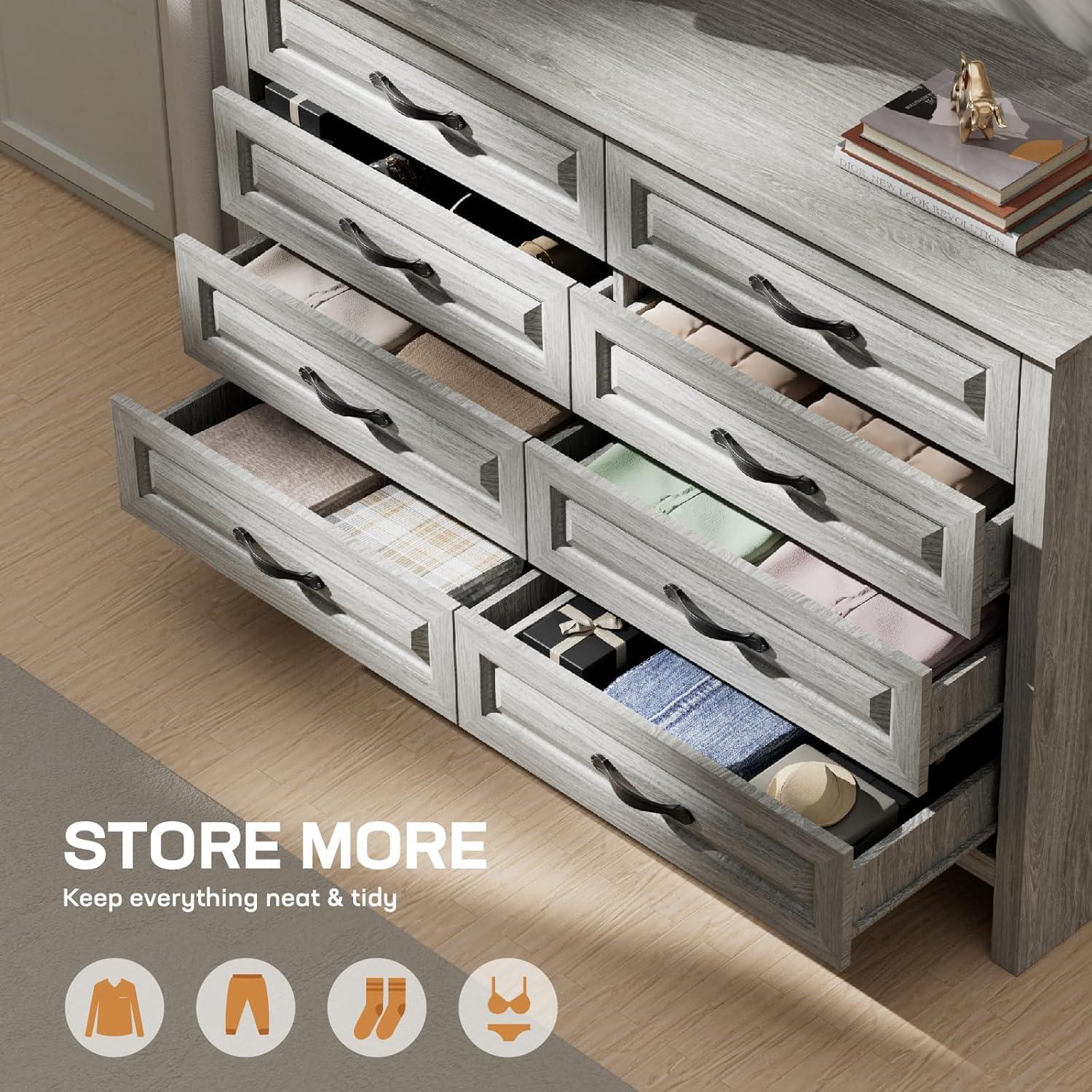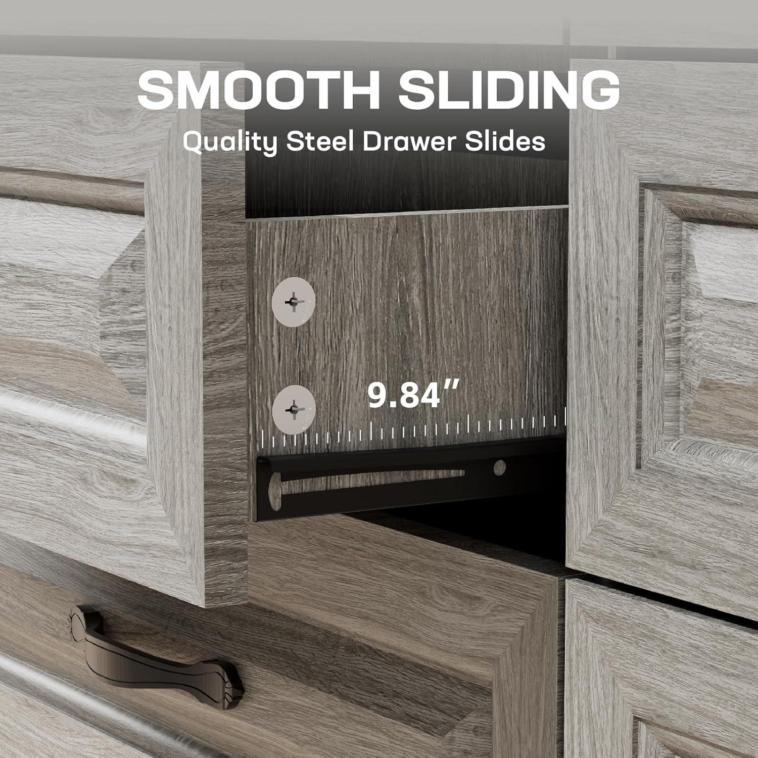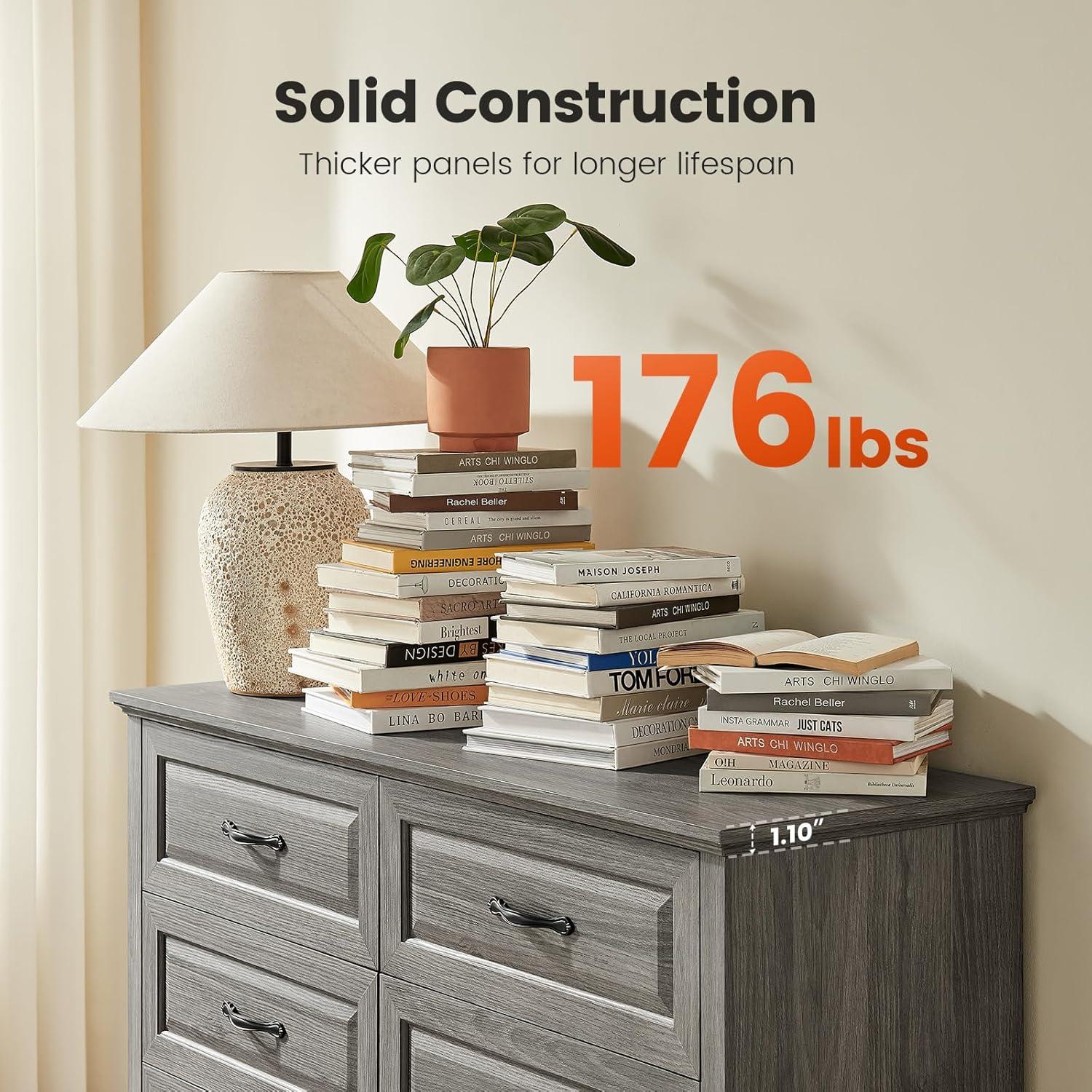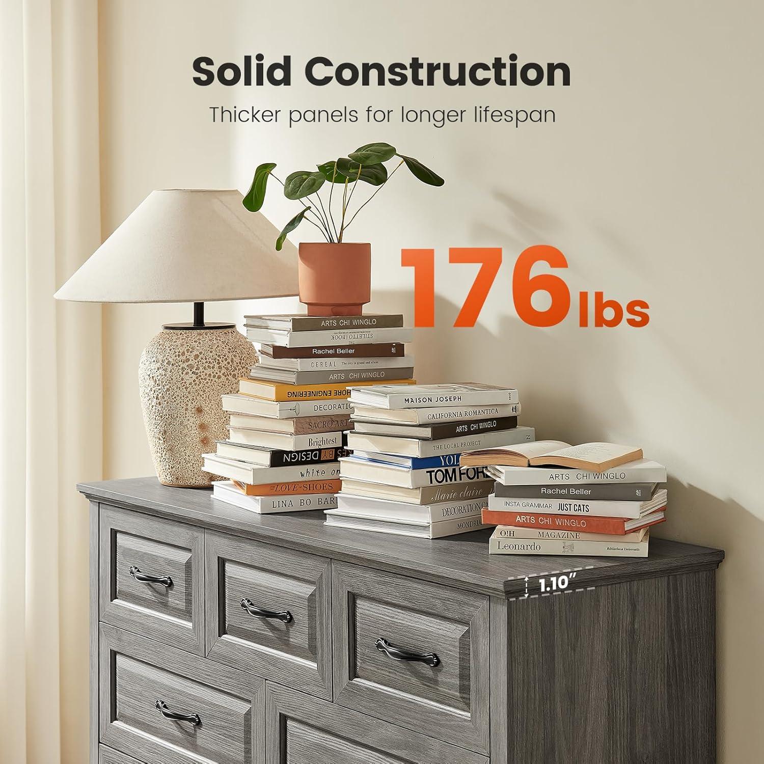 BUILT STRONGER, LASTS LONGER: Constructed from thick, durable P2-grade particle board and MDF, this dresser has a net weight of 92.6 lbs, giving it a solid, stable feel you can rely on. The reinforced structure and thickened panels offer enhanced strength and durability, while the broad base ensures firm support. An included anti-tip kit provides added peace of mind for homes with kids or pets.