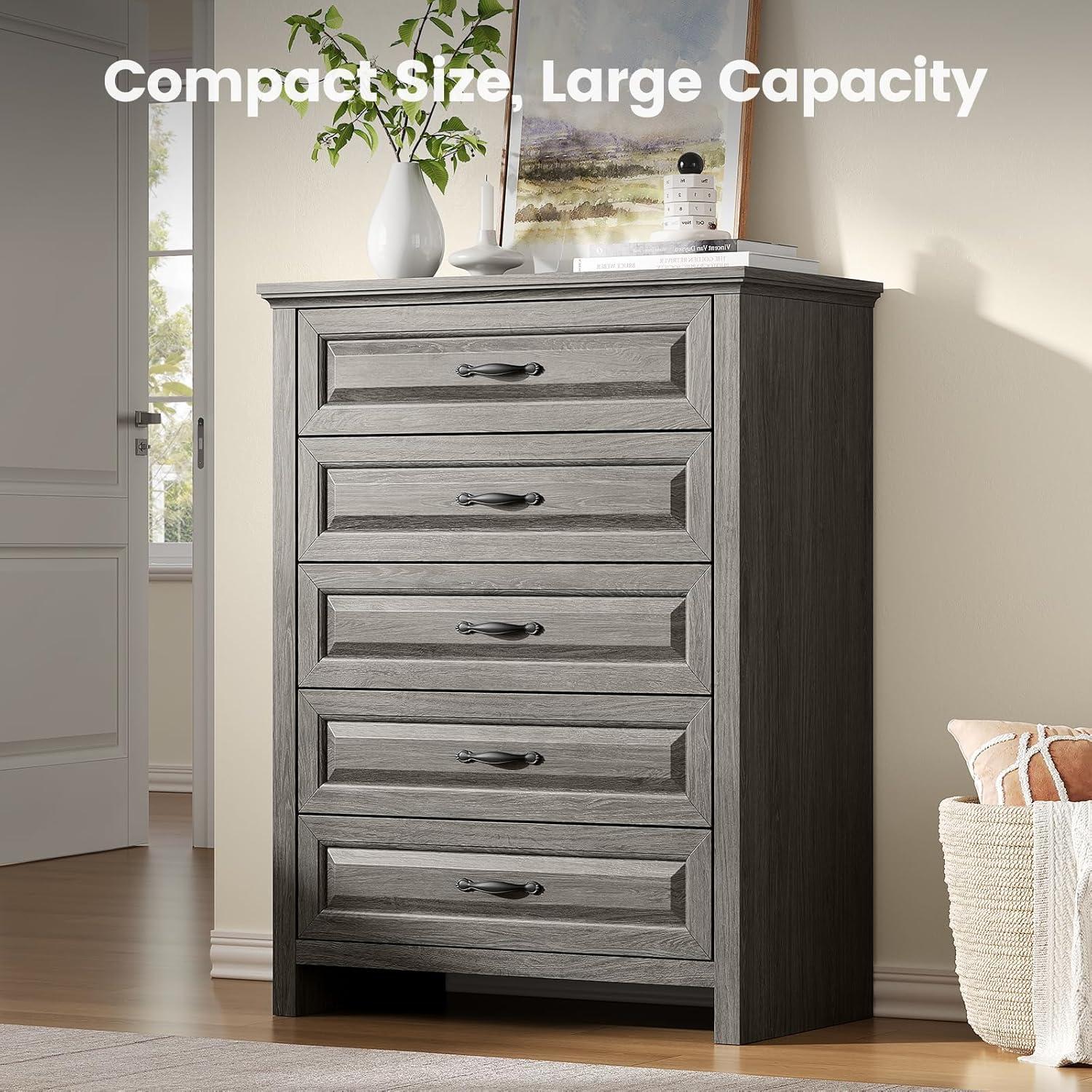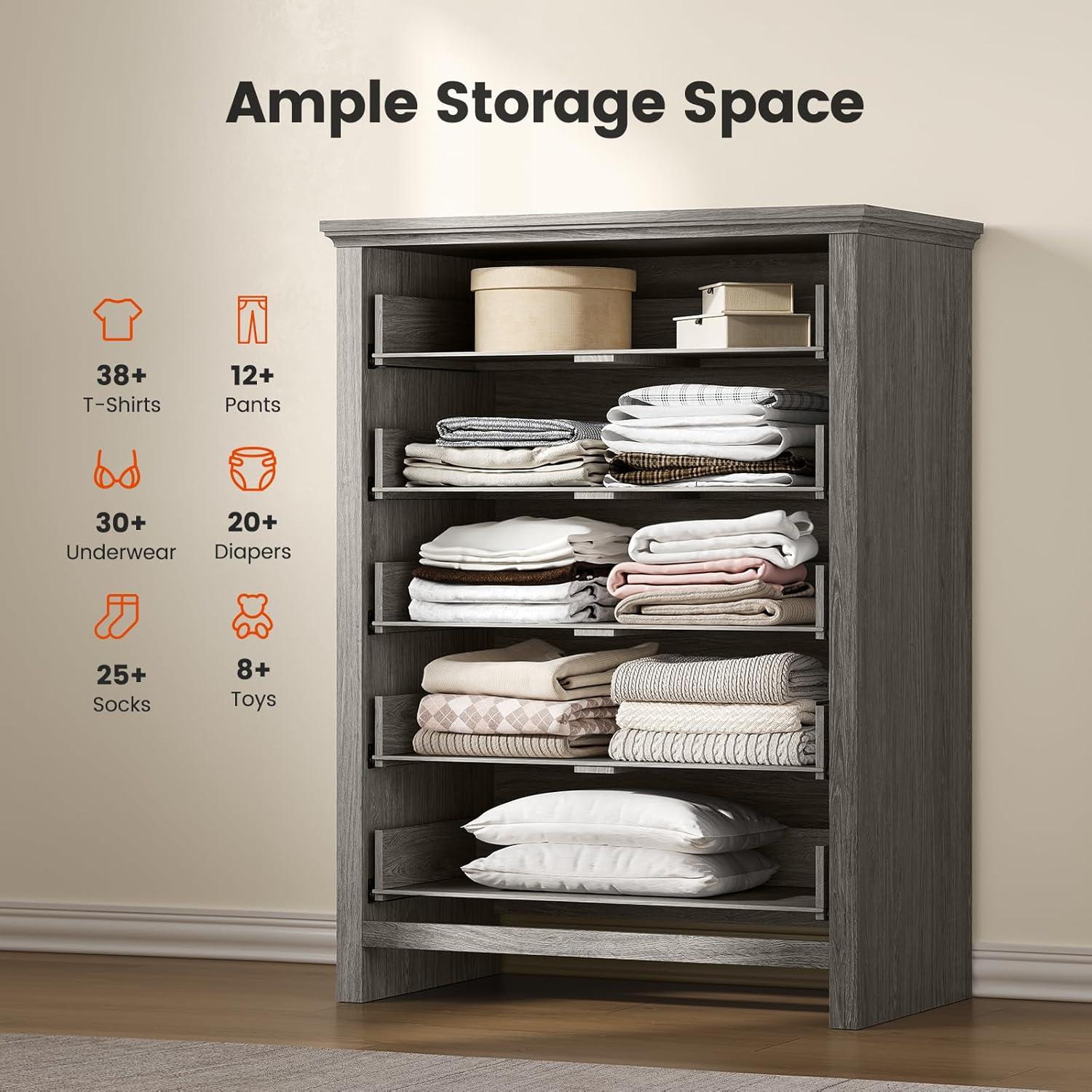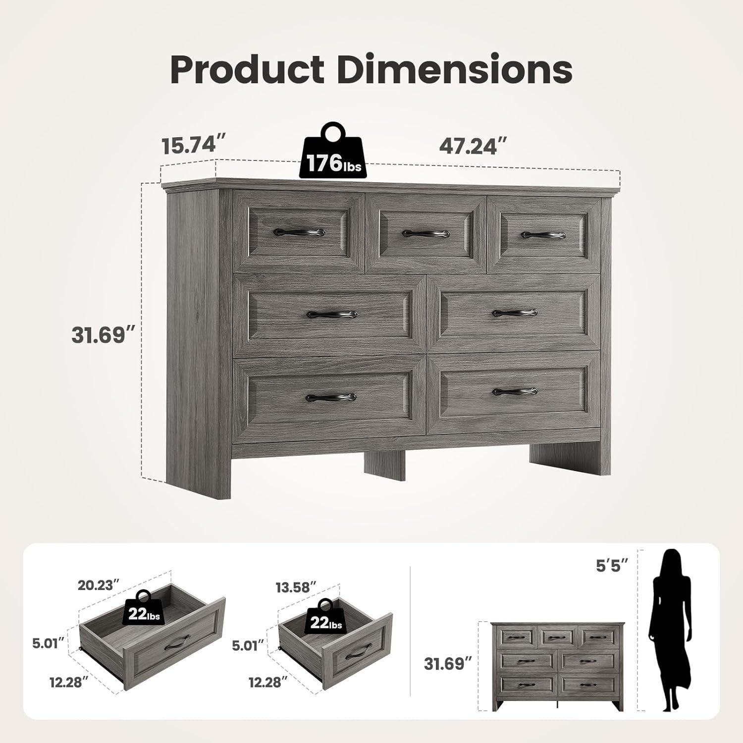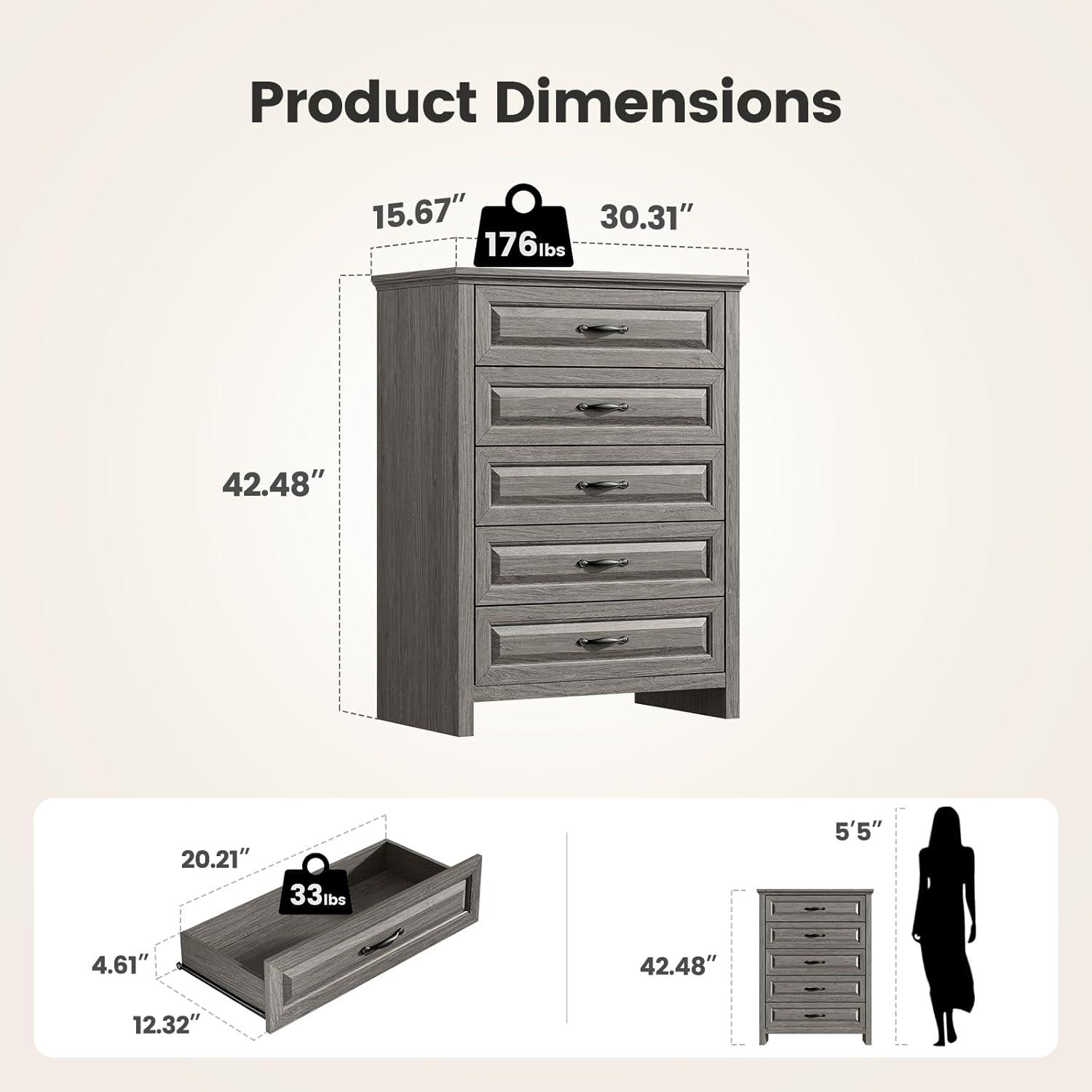 BUILT STRONGER, LASTS LONGER: Constructed from thick, durable P2-grade particle board and MDF, this dresser has a net weight of 92.6 lbs, giving it a solid, stable feel you can rely on. The reinforced structure and thickened panels offer enhanced strength and durability, while the broad base ensures firm support. An included anti-tip kit provides added peace of mind for homes with kids or pets.