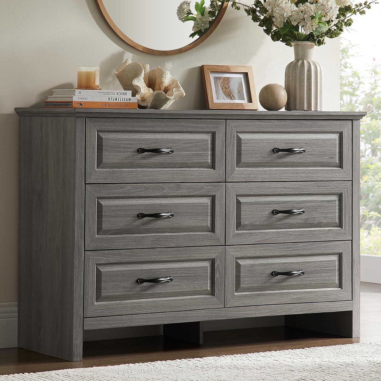 Get your hands on our exclusive Amada Farmhouse 6 Drawer Dresser for Bedroom, 47.2 Inch Wide Wood Dresser with Natural Texture, Large Drawers, Rustic Farmhouse Chest of Drawers for Bedroom, Living Room, Hallway, Gray(Grey) collection, now at a discounted price.