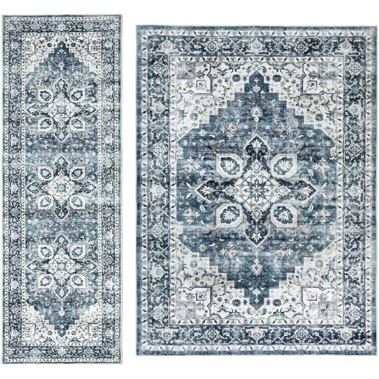 AMADA HOMEFURNISHING 5x7 and 2.7x8 Area Rugs Buying Together, Soft, Machine Washable, Stain-Resistant, Low-Profile Indoor Area Rugs with Non-Slip Backing & Durable Edge Binding
