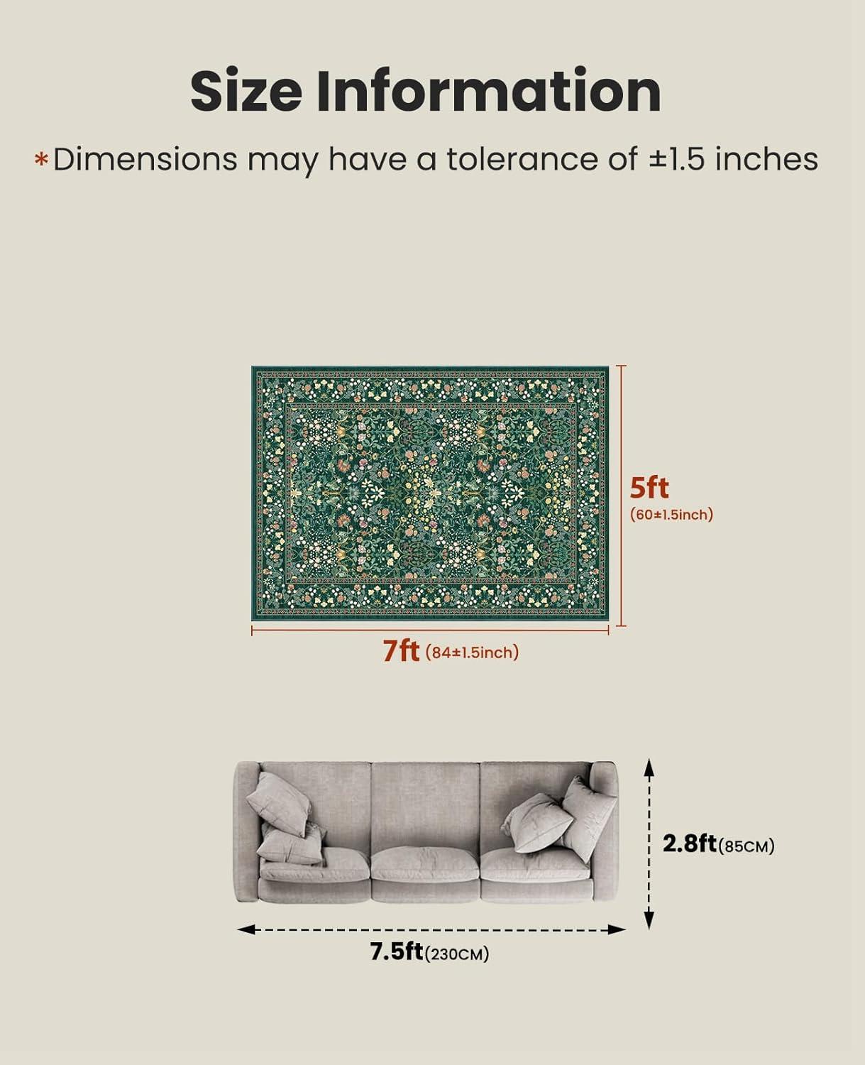 Machine Washable: This low-profile rug helps prevent dirt and dust from accumulating, making vacuuming more efficient. Spills wipe away effortlessly, and for a deeper clean, the area rug 5×7 is machine washable. Ideal for high-traffic areas, it’s both practical and easy to maintain.