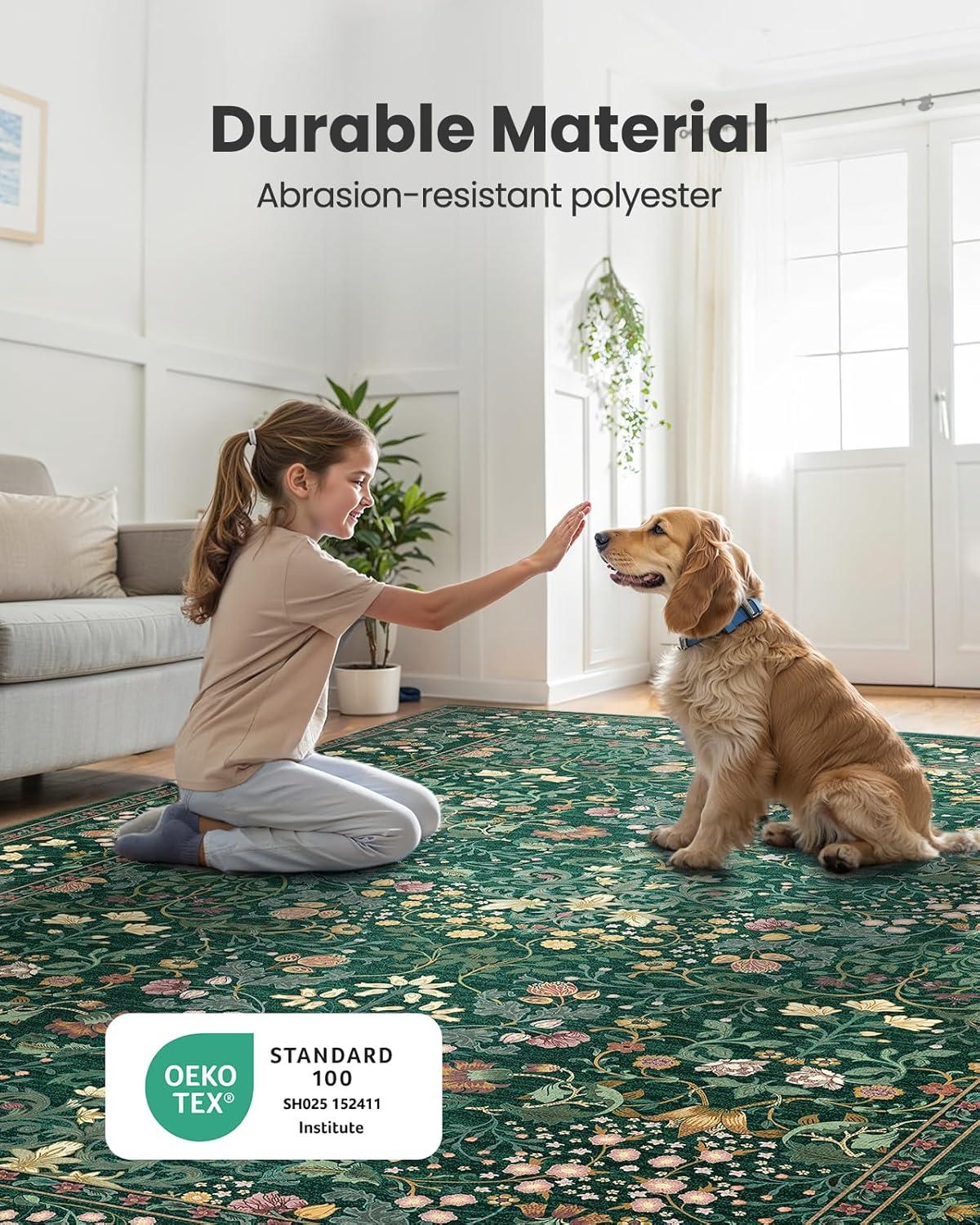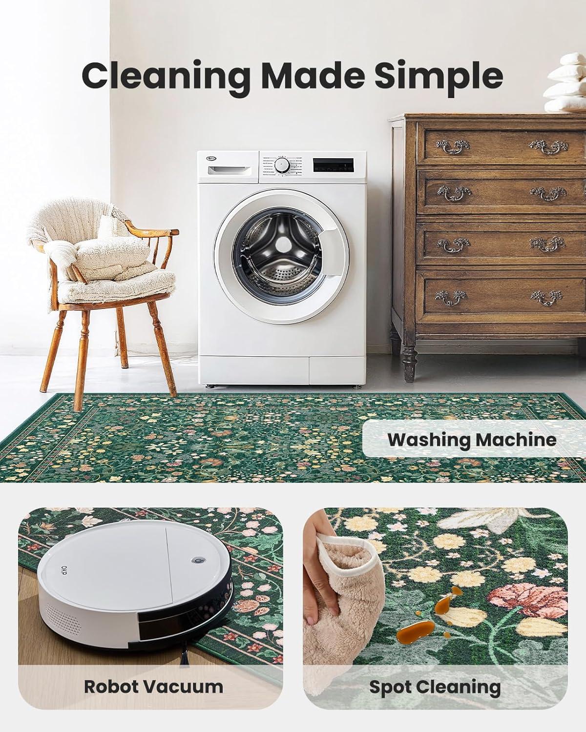 Non-Slip Design: Don't worry about slipping. The washable rug has a non-slip backing that keeps it firmly in place on smooth floors such as tile or wood. It's a great choice for homes with little ones or pets. Feel secure with every step, as it offers stability and comfort for your family.