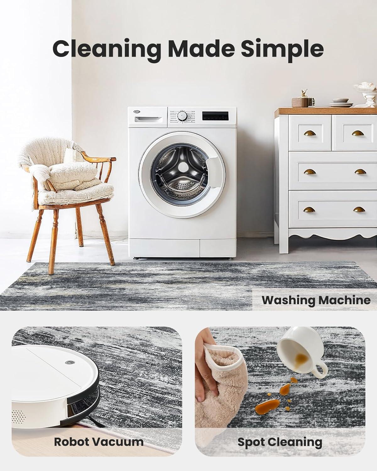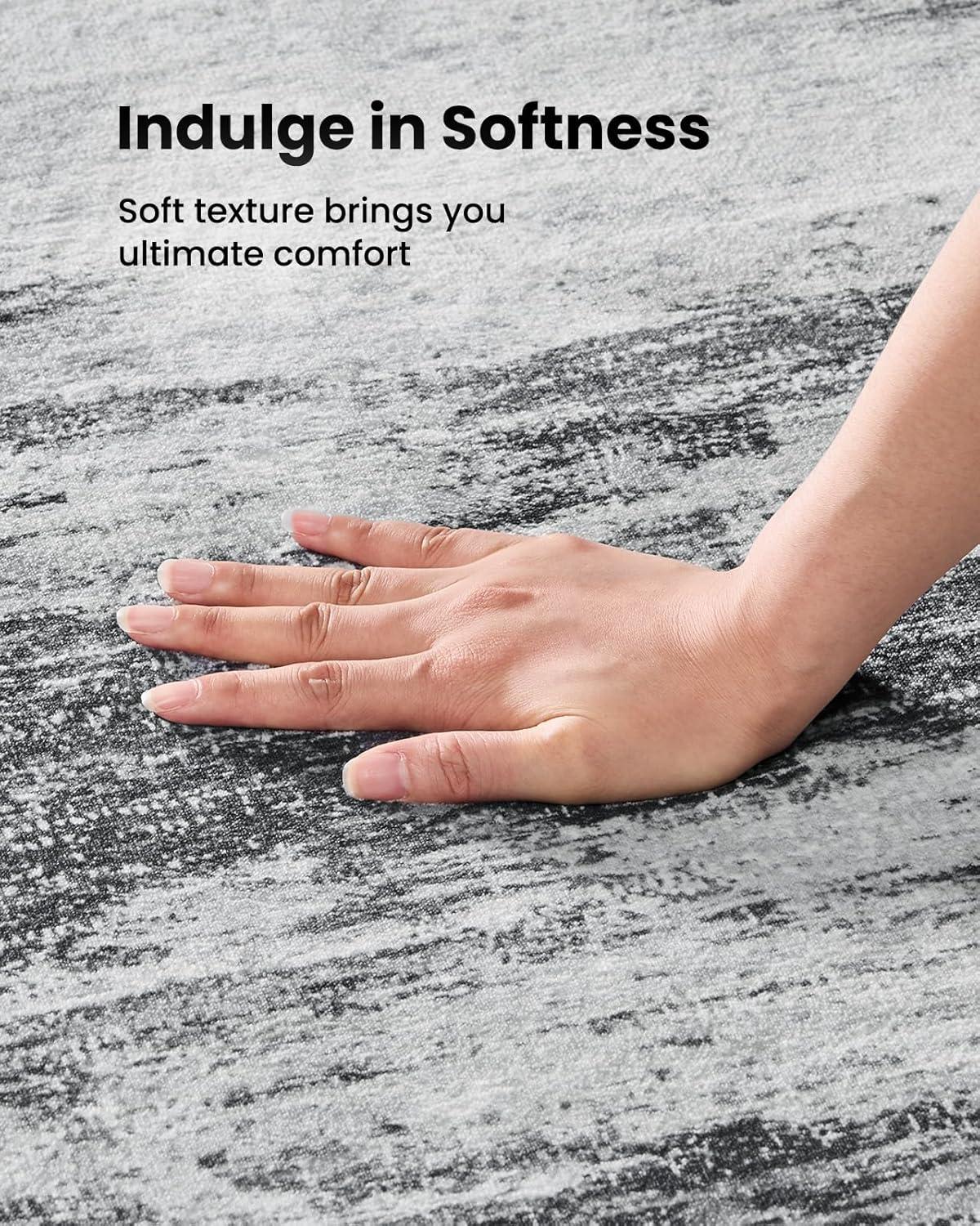 【OEKO-TEX Certified Quality】This washable area rug 5×7 is crafted from OEKO-TEX certified, skin-friendly materials, making it an ideal surface for children & pets. The soft feel provides a cozy barefoot experience all day long.