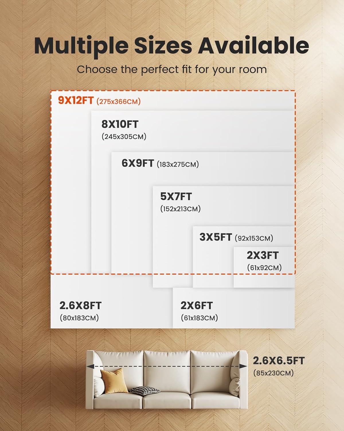 【Durable and Easy to Clean】This living room rug features a 0.24″ low-pile design with double-stitched edges for durability and easy maintenance. It’s easy to clean with a standard vacuum or robotic vacuum. For a deeper clean, this rug is machine washable. Ideal for high-traffic areas.