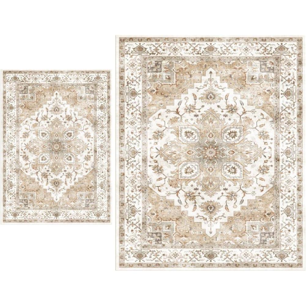 AMADA HOMEFURNISHING 8x10 and 4x6 Area Rugs Buying Together, Soft, Machine Washable, Stain-Resistant, Low-Profile Indoor Area Rugs with Non-Slip Backing & Durable Edge Binding