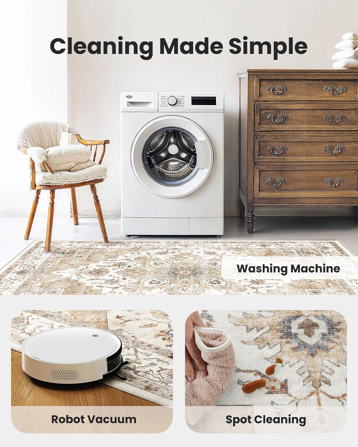 Machine Washable: The short pile design of this washable rug is easy to maintain using an upright vacuum or robotic vacuum cleaner. The area rug is also machine-washable for fast and hassle-free cleaning. After washing, a low-temperature iron can help to keep the living room carpet’s surface flat and smooth.