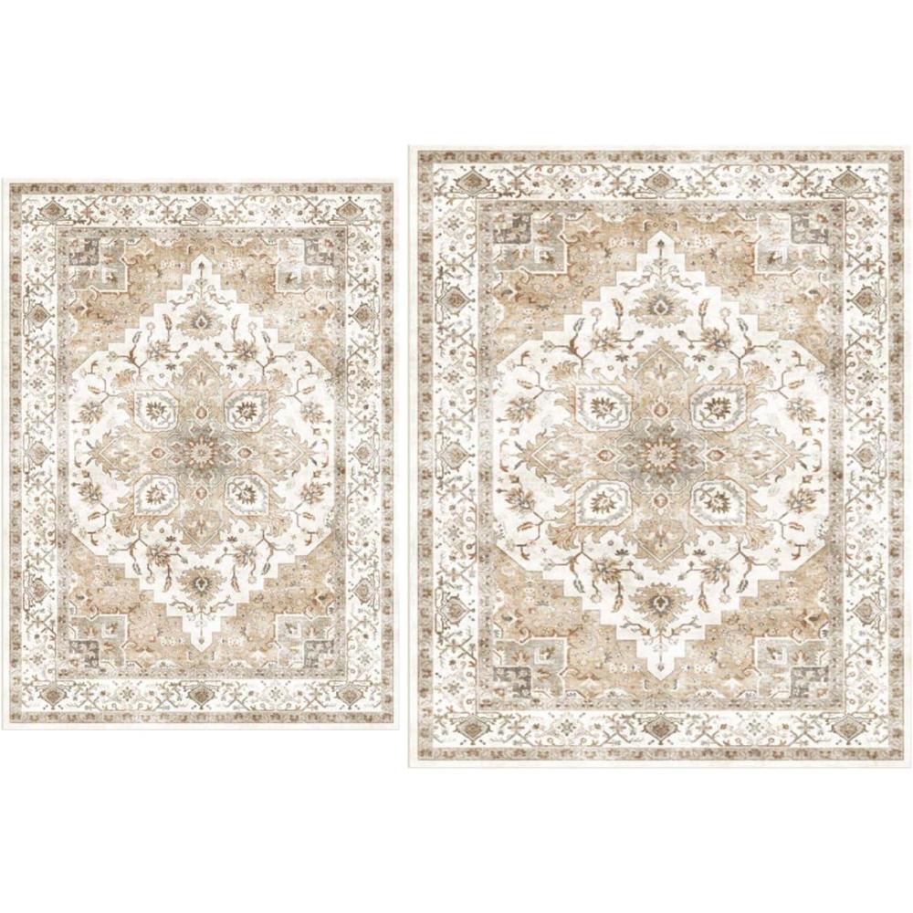 AMADA HOMEFURNISHING 8x10 and 6x9 Area Rugs Buying Together, Soft, Machine Washable, Stain-Resistant, Low-Profile Indoor Area Rugs with Non-Slip Backing & Durable Edge Binding