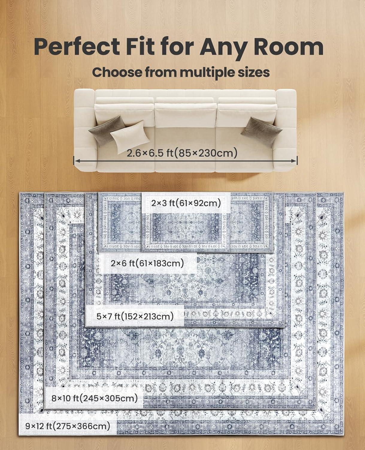 Coordinate with Multiple Sizes: Our machine washable area rugs are available in multiple sizes, allowing you to create a rug layout that fits your space. Whether you need a rug for your entryway, a runner for your kitchen, or larger coverage for your living room, you can choose the dimensions that match your style. Please note that rug color may appear slightly different under various lighting conditions.