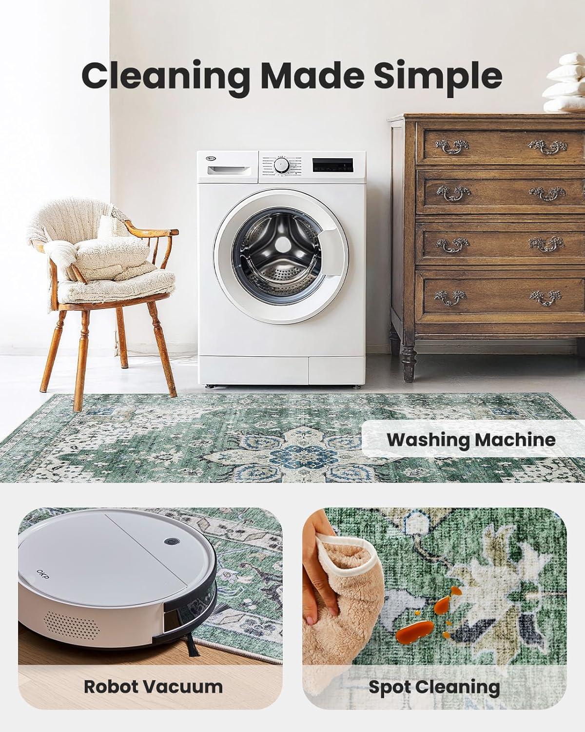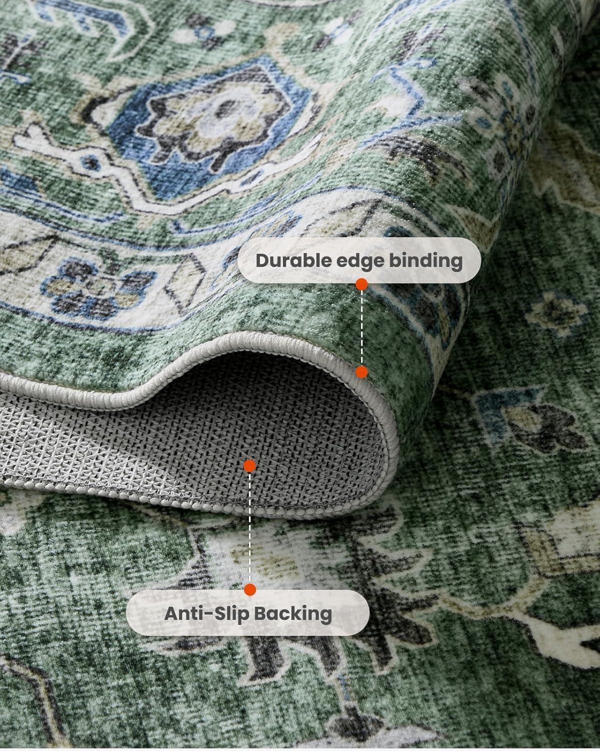 AMADA HOMEFURNISHING 8×10 Area Rug, Washable Low-Profile Large Area Rug with Non-Slip Backing & Durable Edge Binding, Vintage Large Rugs for Living Room, Bedroom(Green)