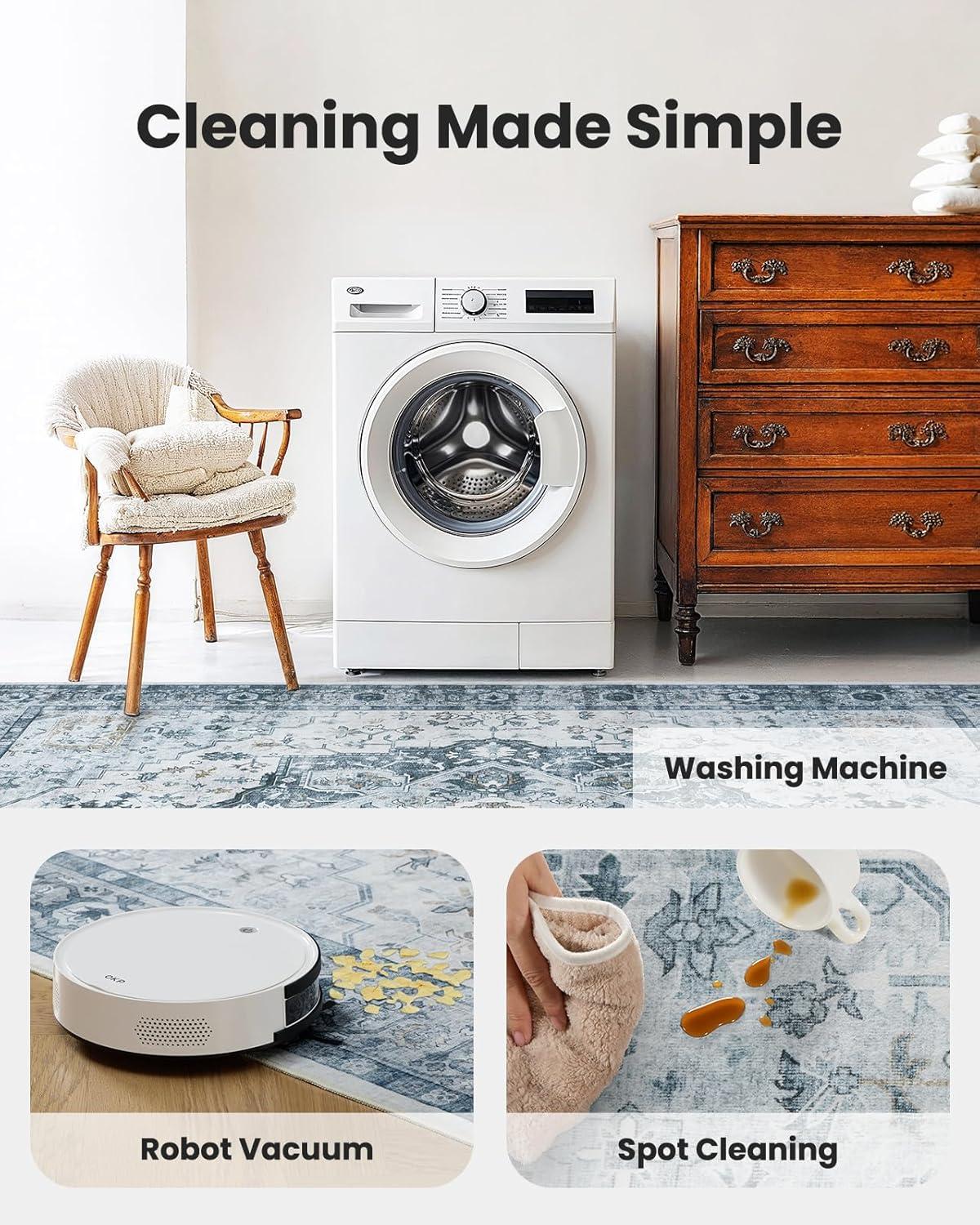 Machine Washable: The short pile design of this washable rug is easy to maintain using an upright vacuum or robotic vacuum cleaner. The area rug is also machine-washable for fast and hassle-free cleaning. After washing, a low-temperature iron can help to keep the living room carpet’s surface flat and smooth.