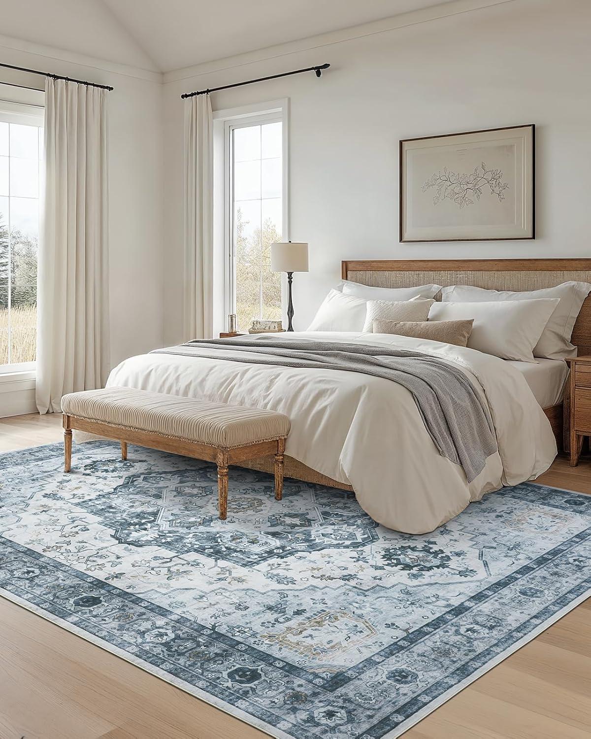 Be the first to review “AMADA HOMEFURNISHING 8×10 Area Rug, Washable Low-Profile Large Area Rug with Non-Slip Backing & Durable Edge Binding, Vintage Large Rugs for Living Room, Bedroom(Ivory/Blue)”