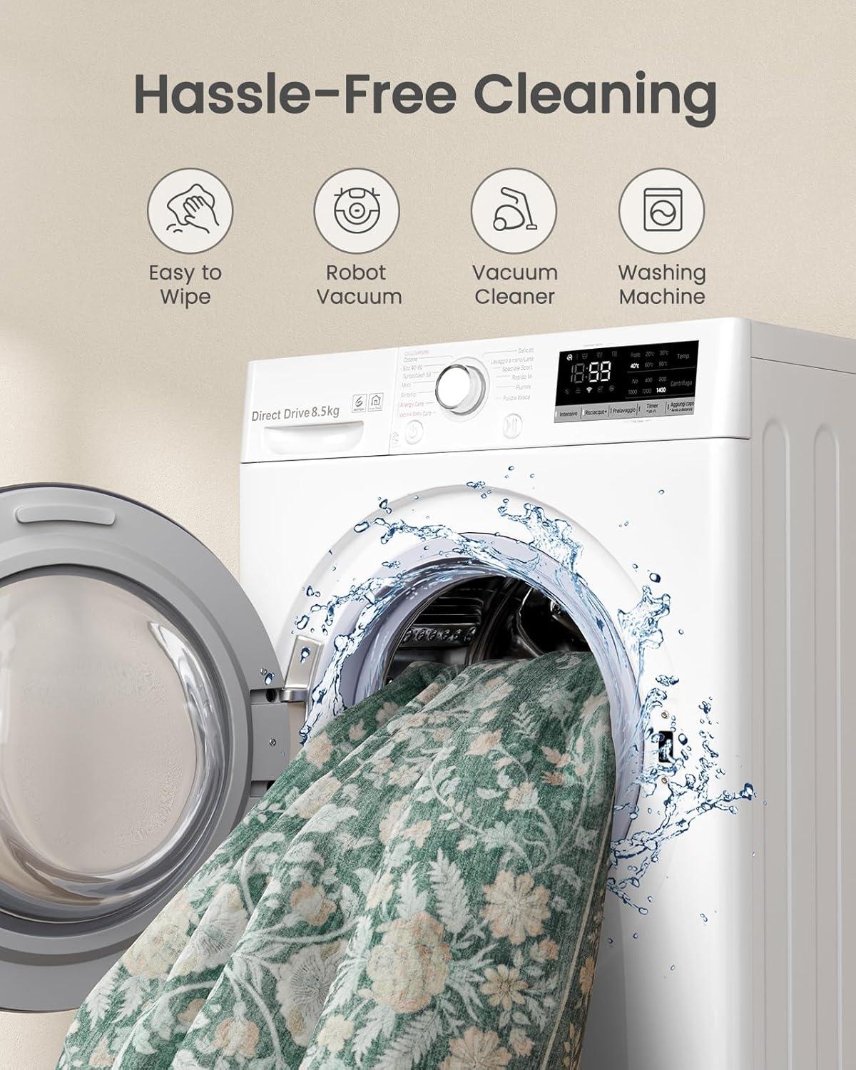 Machine Washable: This low-profile 8×10 washable area rug helps prevent dirt and dust from accumulating, making vacuuming more efficient. Spills wipe away effortlessly, and for a deeper clean, the rug 8×10 area rug is machine washable. Ideal for high-traffic areas, it’s both practical and easy to maintain.
