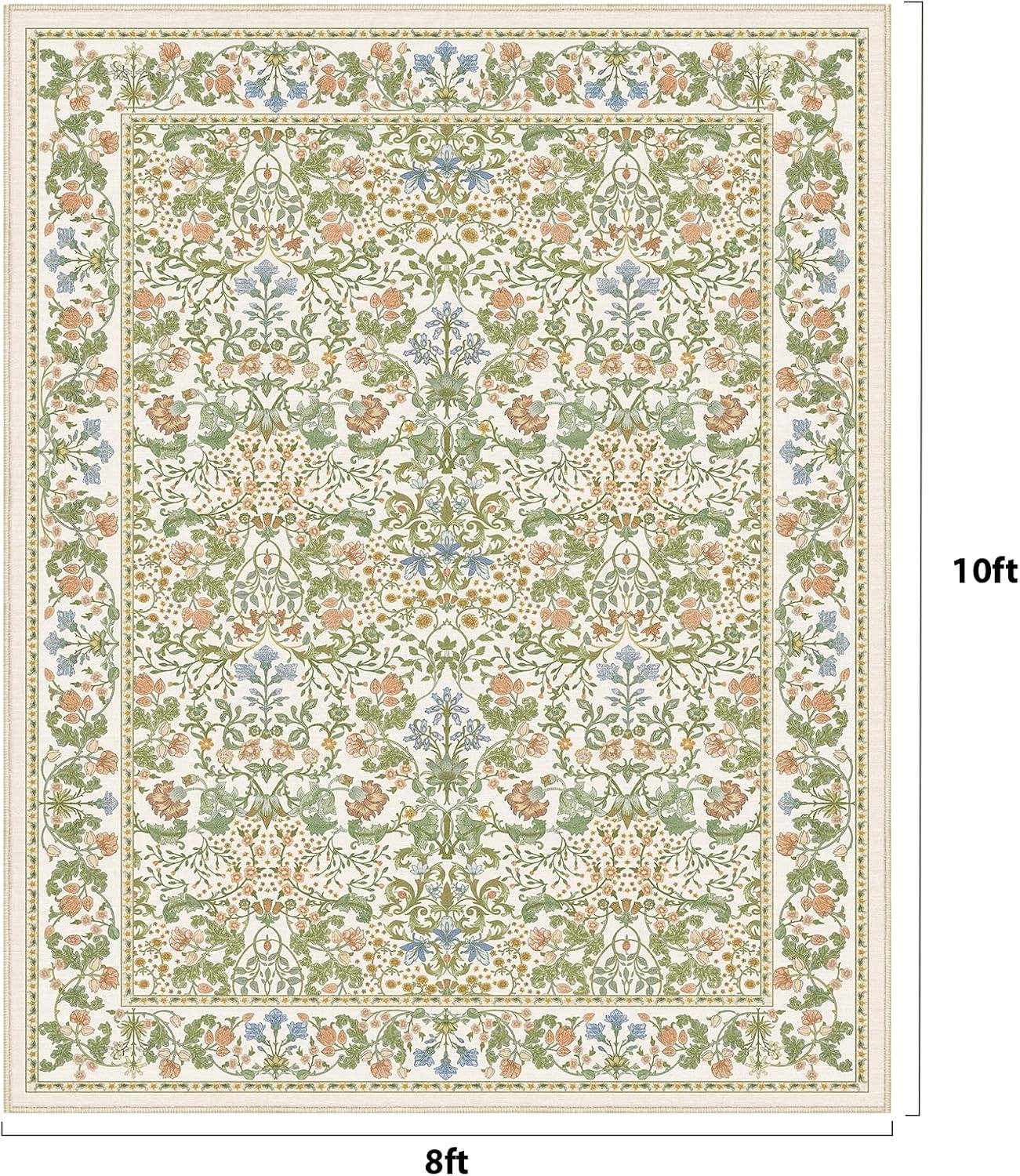 AMADA HOMEFURNISHING 8x10 Washable Area Rugs for Living Room, Non-Slip & Low-Profile Floral Large Area Rug with Durable Edge Binding, Soft Rugs for Living Room, Bedroom, Dining Room(Light Beige)