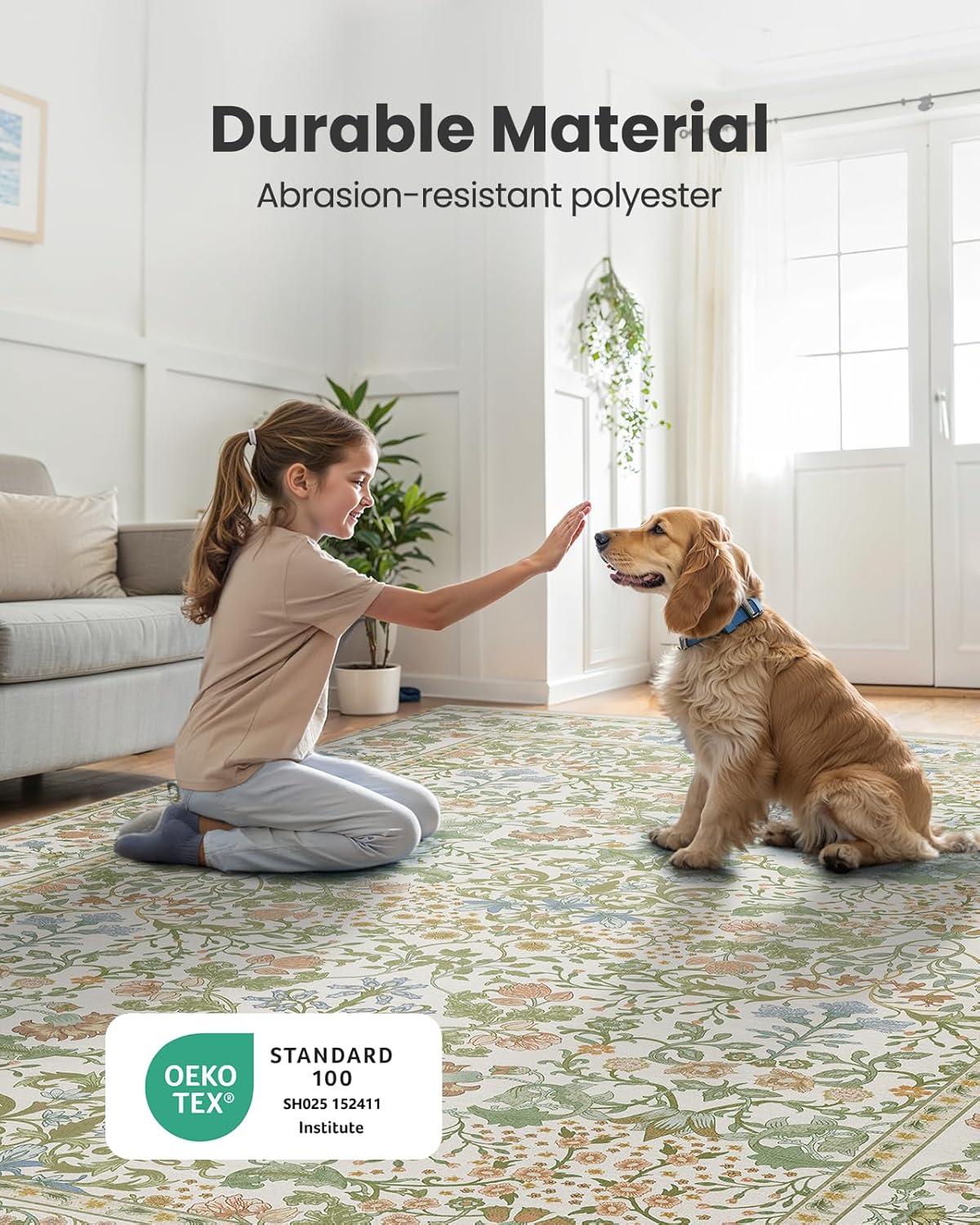 Non-Slip Design: Don't worry about slipping. The 8×10 living room rug has a non-slip backing that keeps it firmly in place on smooth floors such as tile or wood. It's a great choice for homes with little ones or pets. Feel secure with every step, as it offers stability and comfort for your family.