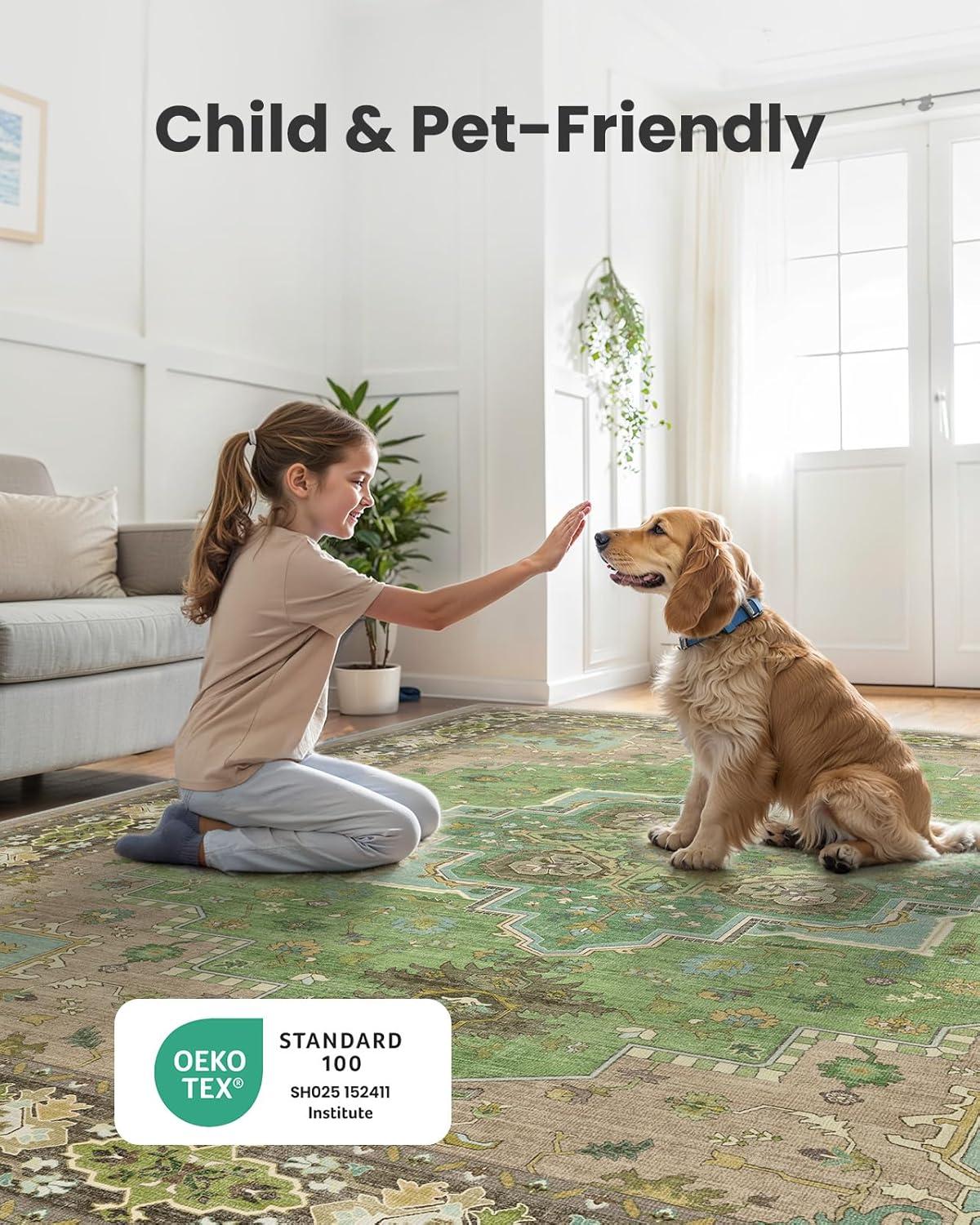 Enduring Softness Underfoot: Made from certified, skin-friendly materials, this soft bedroom rug 9×12 brings comfort and warmth to your home. It also features abrasion-resistant fibers and reinforced edges for durability. This barefoot-friendly rug is perfect for creating a cozy and joyful space for little ones and pets to play and relax.
