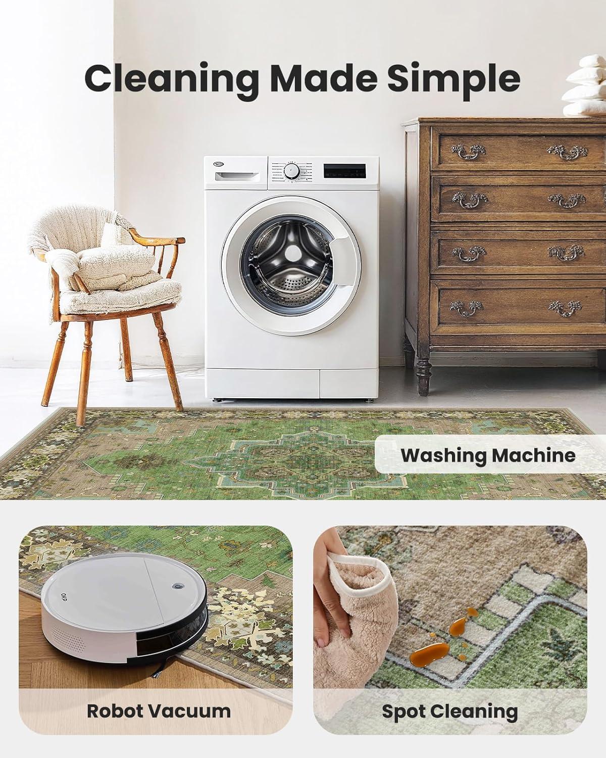 Machine Washable: Spills wipe away with ease — no need to stress over coffee or juice accidents. The low-profile design helps prevent dirt and dust buildup, making vacuuming more efficient. For a deeper clean, this 9×12 area rug is machine washable. Perfect for high-traffic areas, it is both practical and easy to clean.