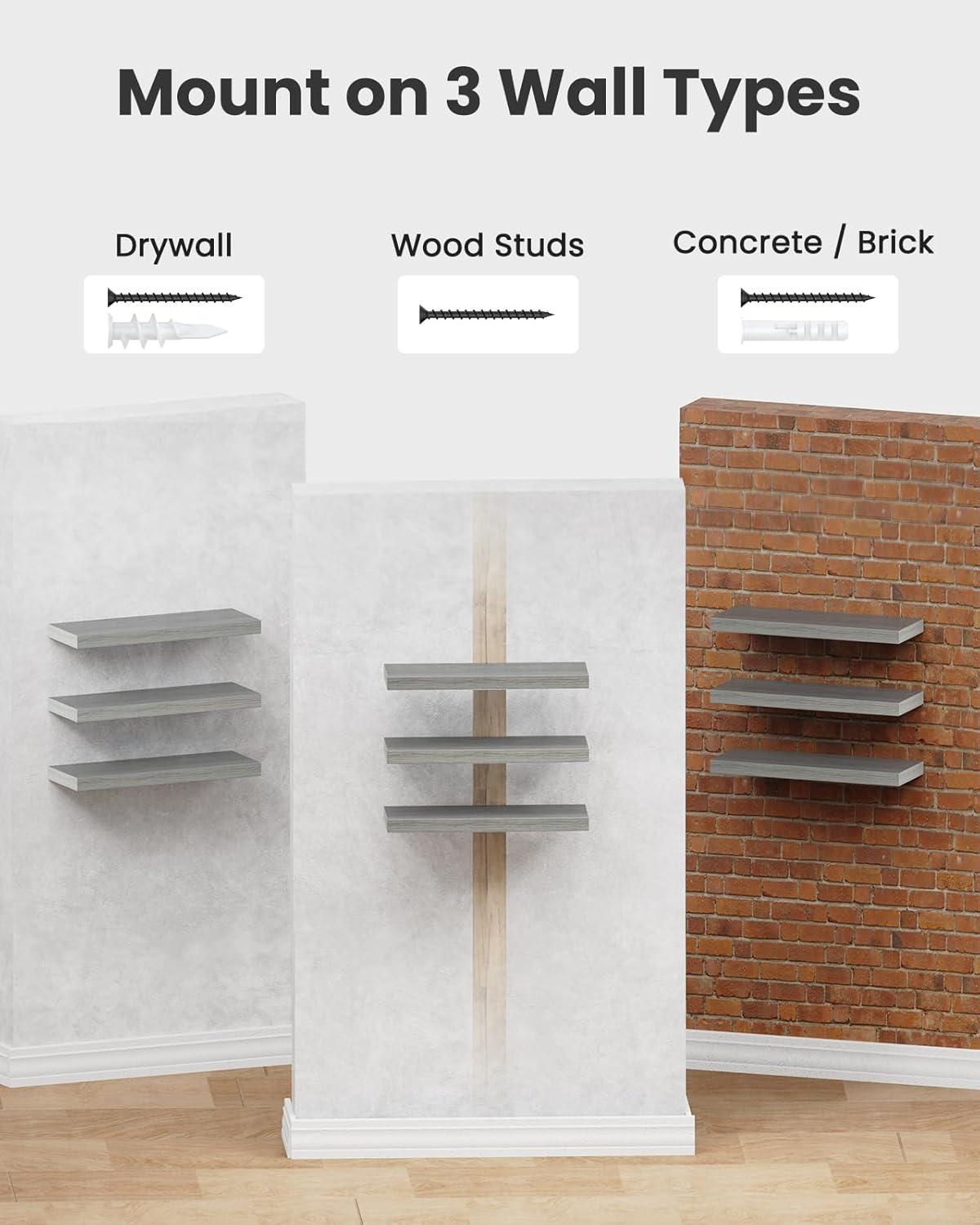Sturdy and Easy to Assemble: Includes all necessary hardware to make these floating shelves extremely easy to assemble. We also provide you with detailed install instructions for you to install the shelves in a few minutes.
