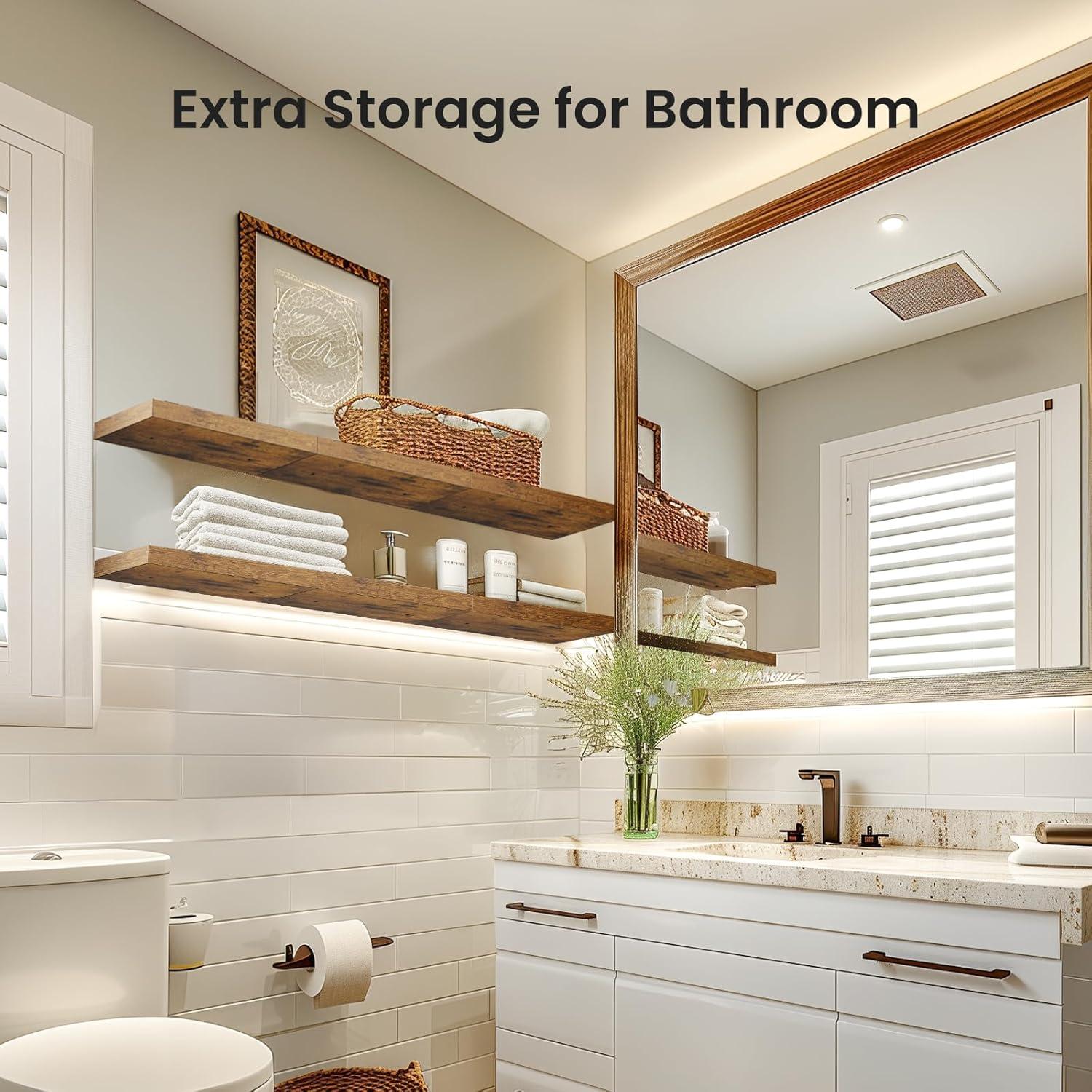 Why Purchase Our Floating Shelves?: With the functional floating shelves for wall, everything will be within reach which can make your life easier and cleaner. Perfect for your living room, bathroom, bedroom, kitchen, etc. Making them a great choice for family or friends.