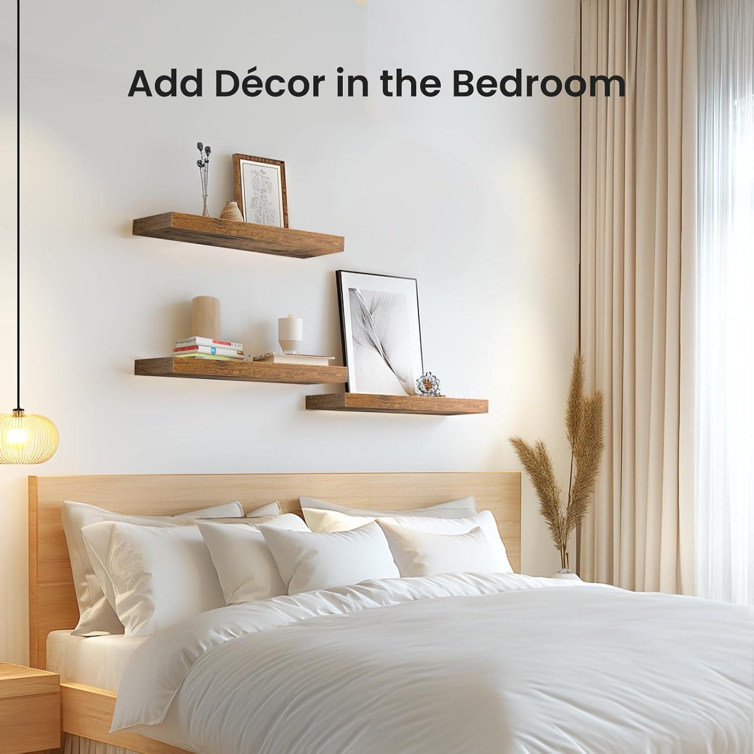 AMADA HOMEFURNISHING Floating Shelves, Wall Shelves for Bathroom/Living Room/Bedroom/Kitchen Decor, White Shelves with Invisible Brackets Set of 3 - AMFS08(Rustic Brown)