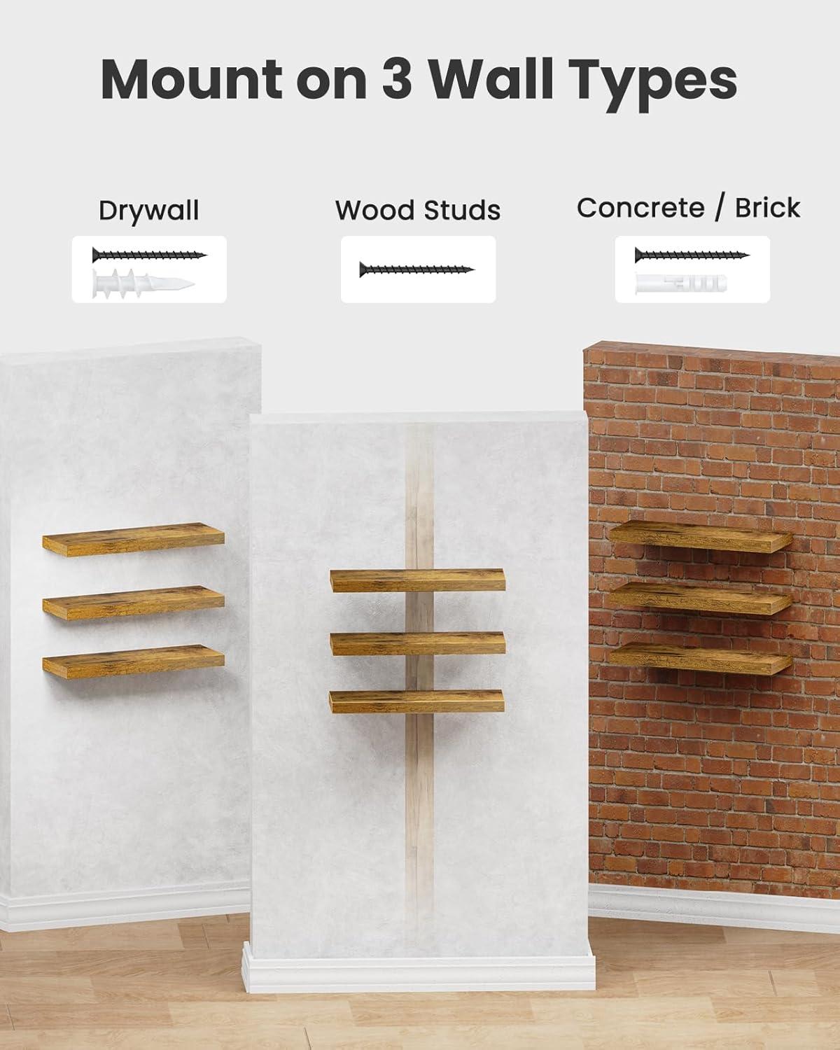 AMADA HOMEFURNISHING Floating Shelves, Wall Shelves for Bathroom/Living Room/Bedroom/Kitchen Decor, White Shelves with Invisible Brackets Set of 3 – AMFS08(Rustic Brown)