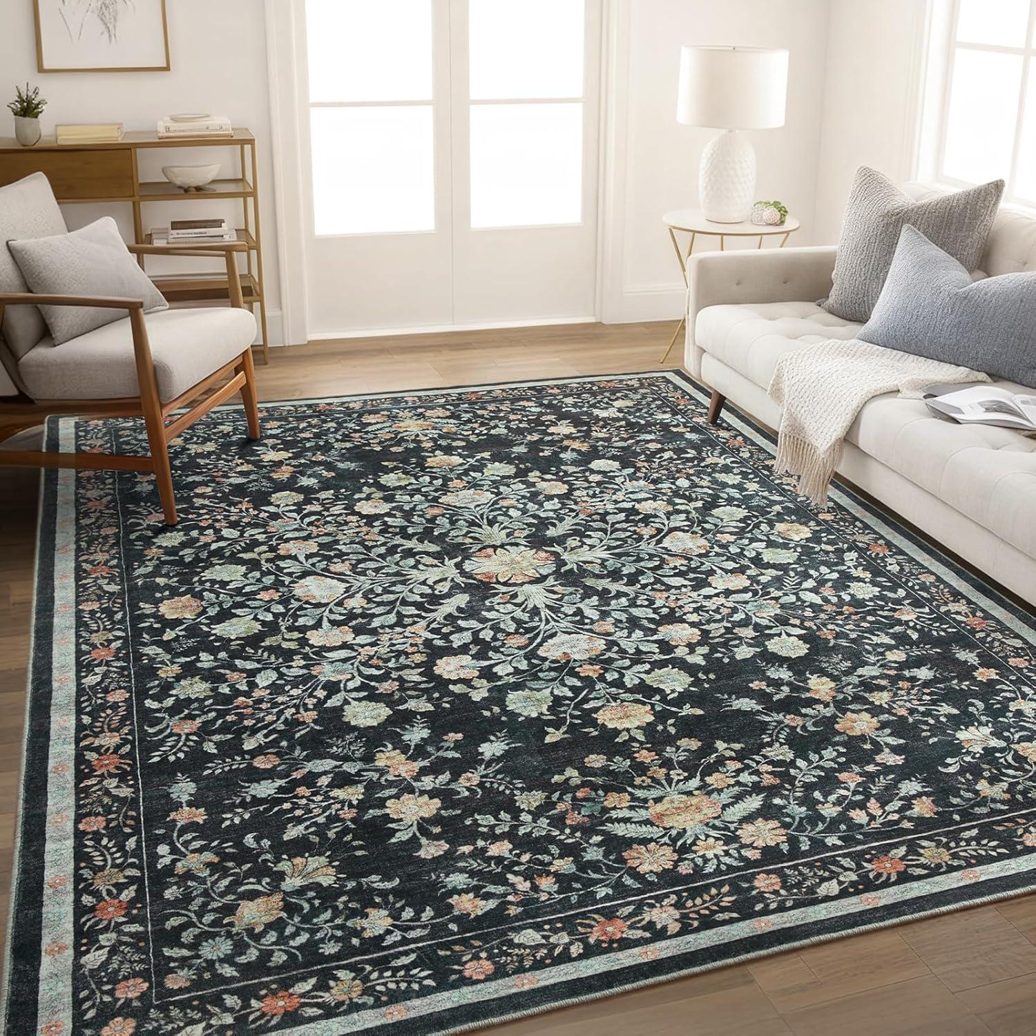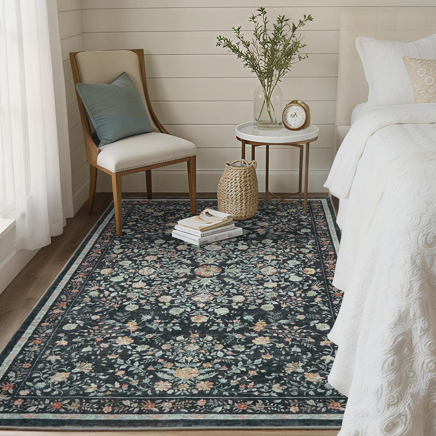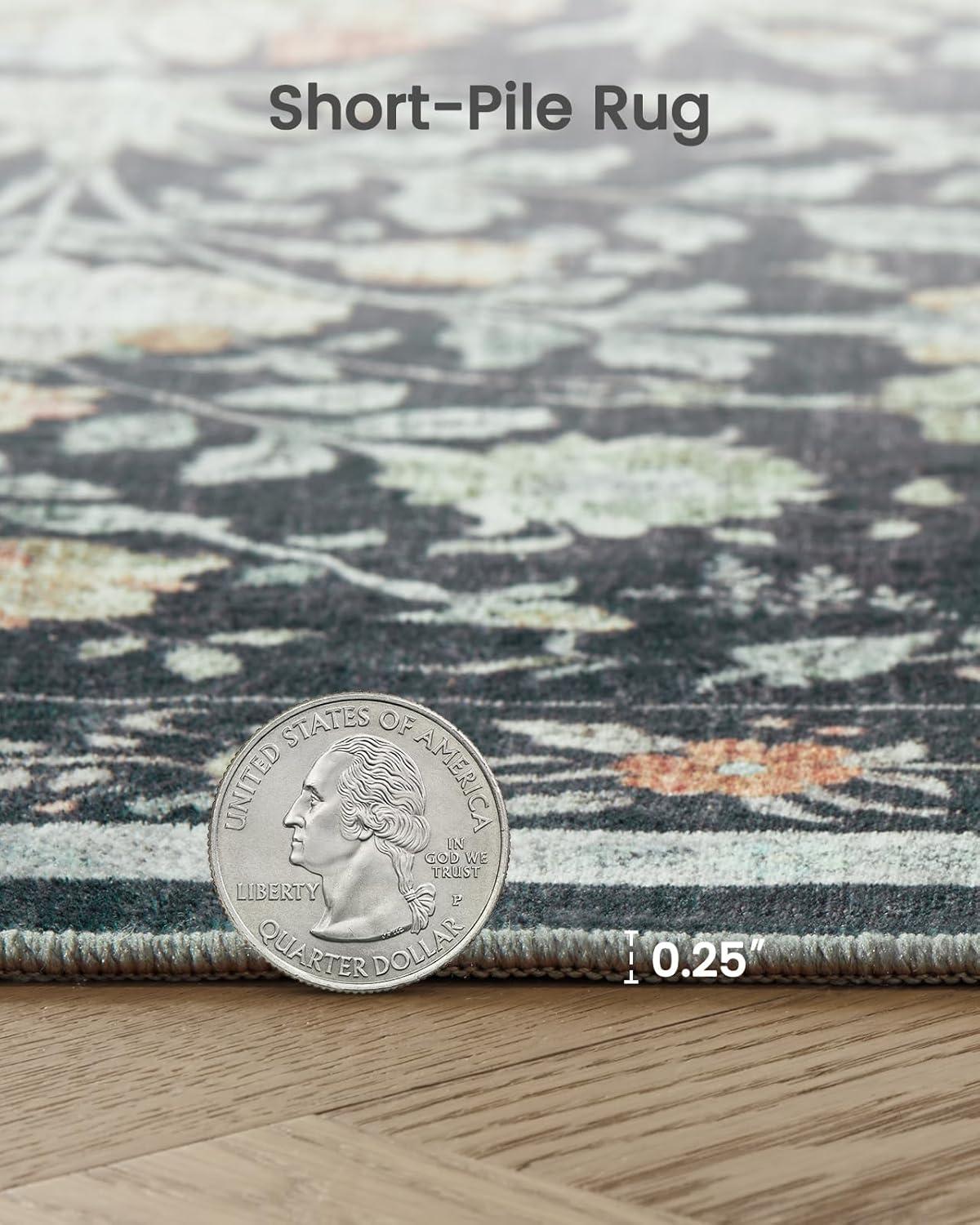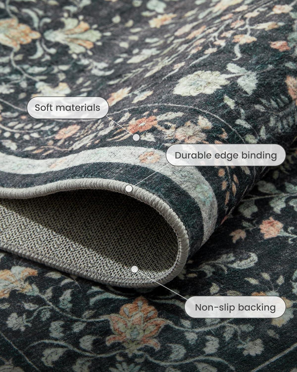 AMADA HOMEFURNISHING Runner Rug 2.6x8, Washable Runner Rugs Anti-Slip with Durable Edge Binding, Vintage Floral Soft Rug for Living Room, Hallway, Kitchen and Home Office(Black)