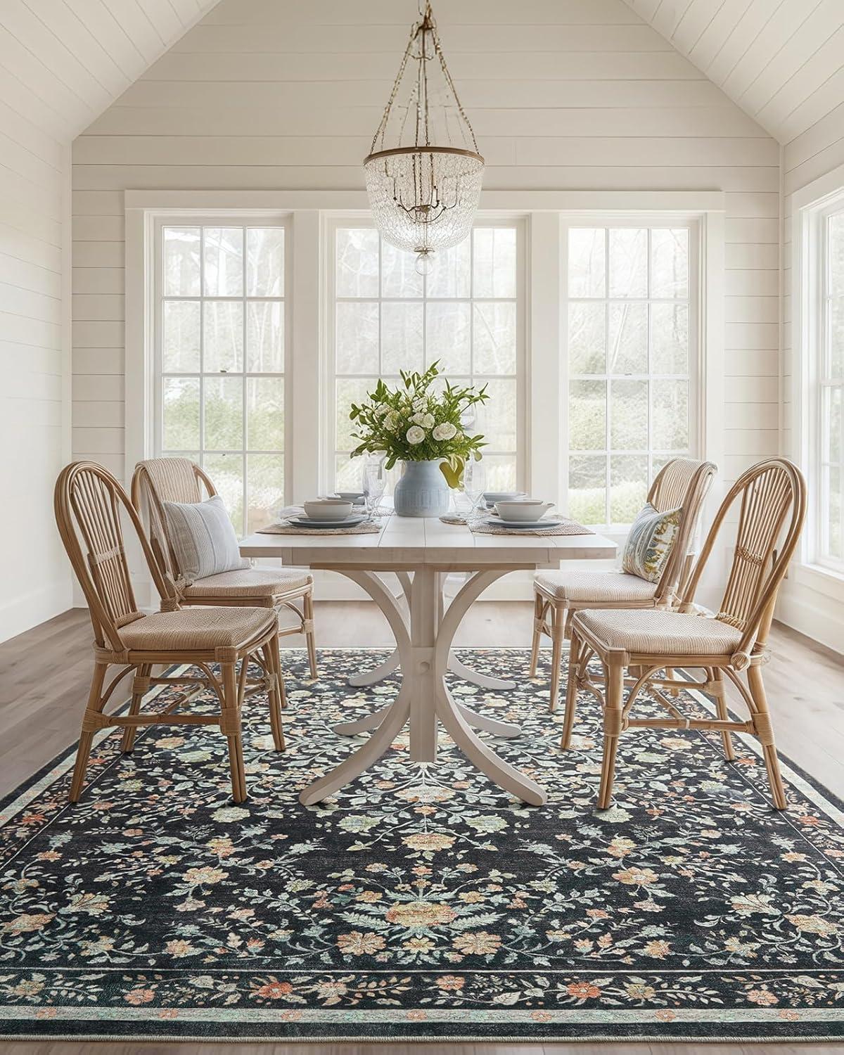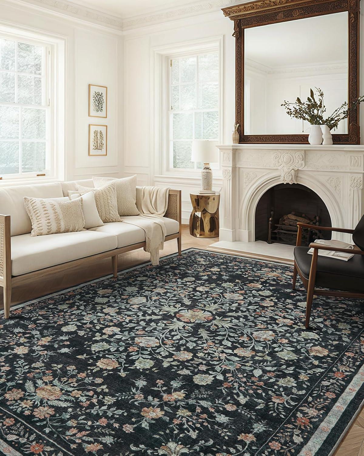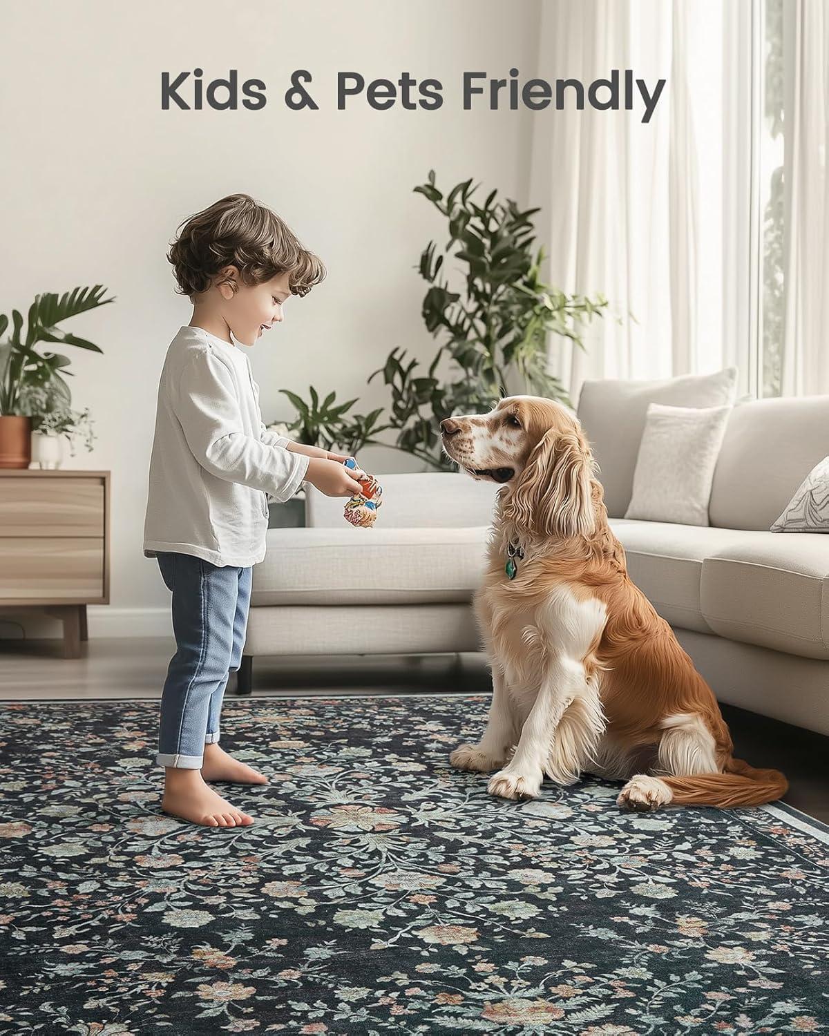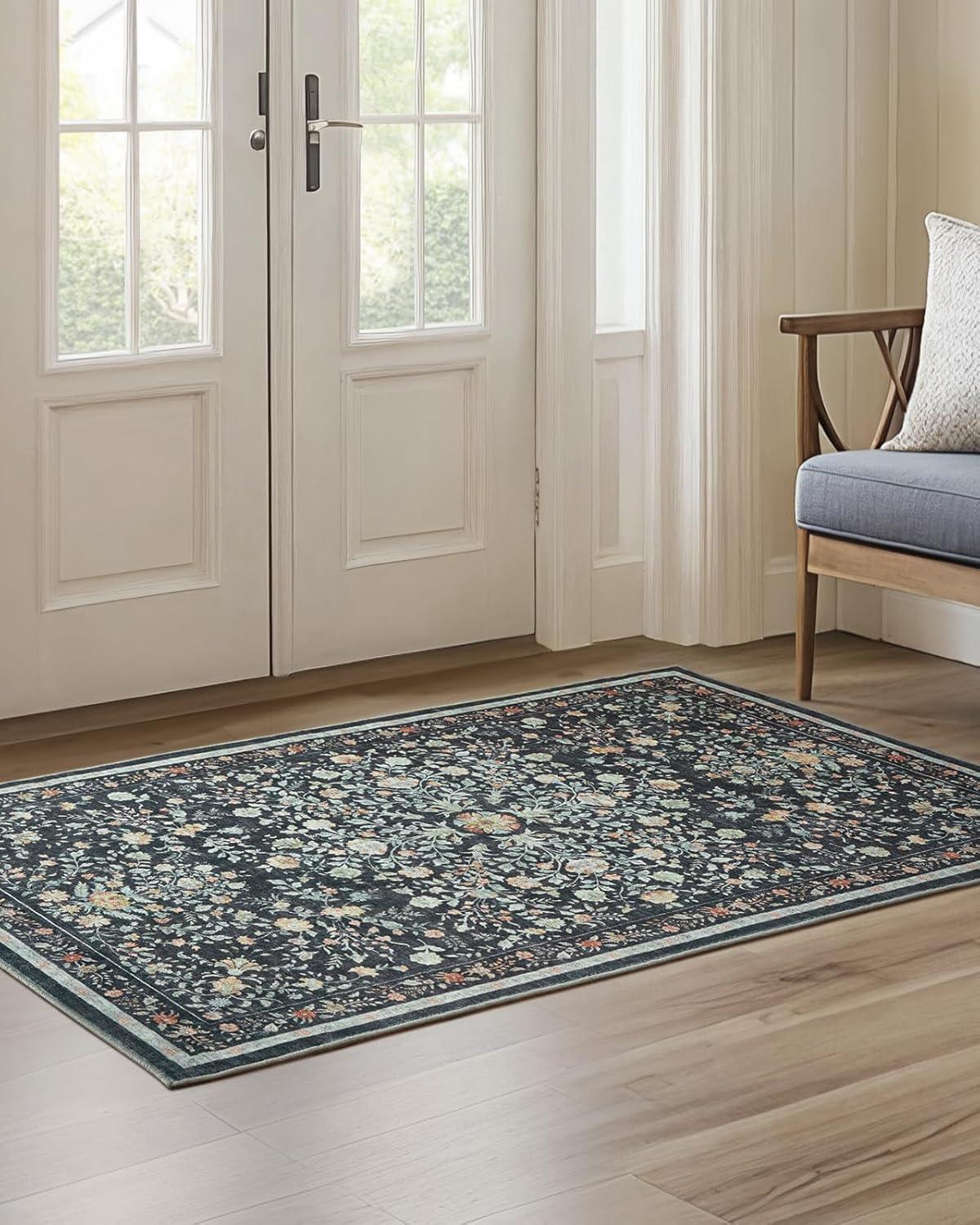 AMADA HOMEFURNISHING Runner Rug 2.6x8, Washable Runner Rugs Anti-Slip with Durable Edge Binding, Vintage Floral Soft Rug for Living Room, Hallway, Kitchen and Home Office(Black)