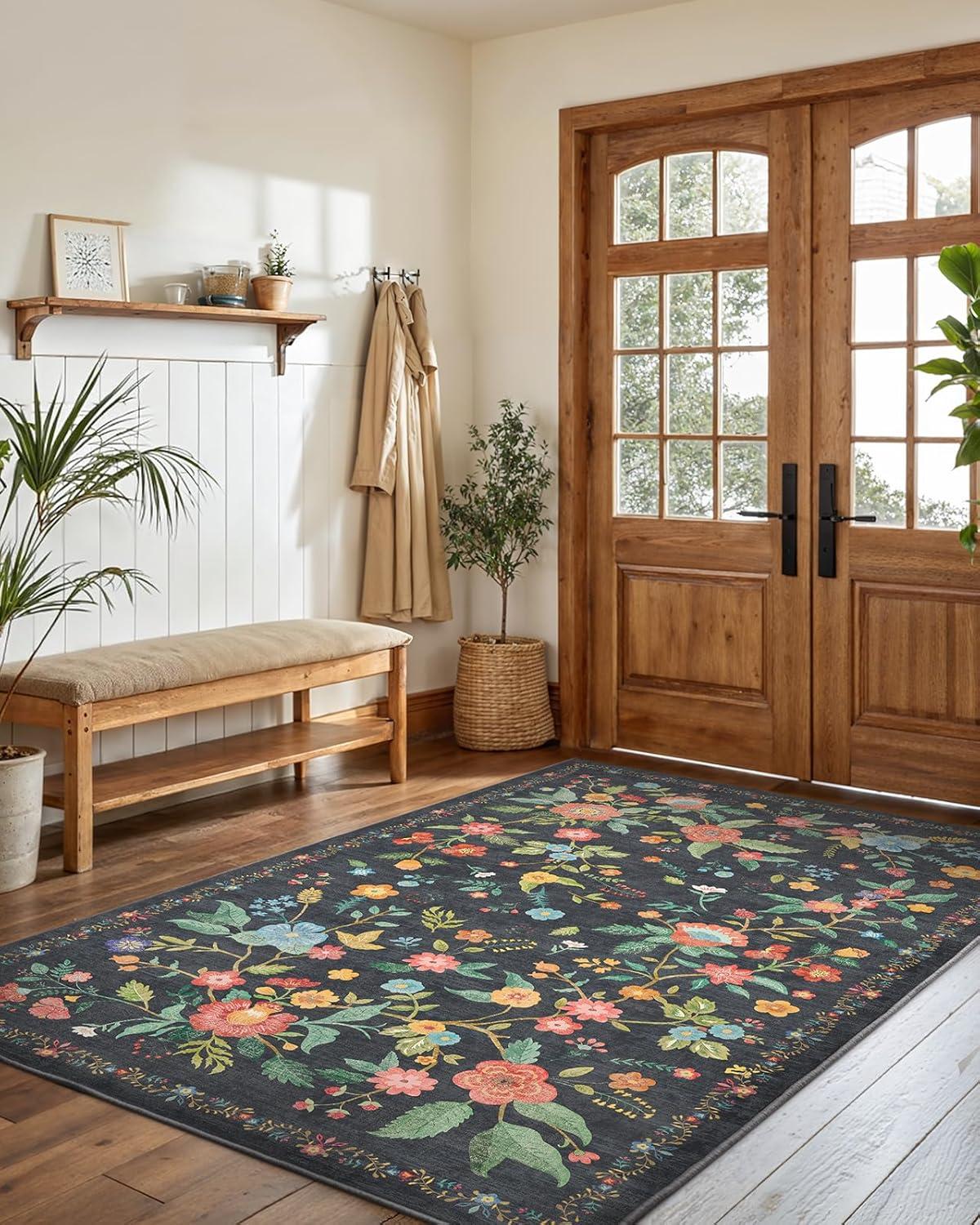 AMADA HOMEFURNISHING Runner Rug 2.6x8, Washable Runner Rugs Anti-Slip with Durable Edge Binding, Vintage Floral Soft Rug for Living Room, Hallway, Kitchen and Home Office(Depth Black)
