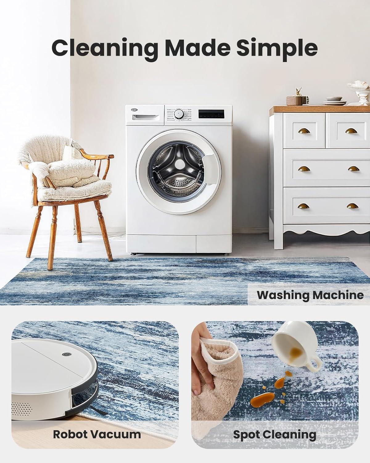 【Durable and Easy to Clean】This living room rug features a 0.24″ low-pile design with double-stitched edges for durability and easy maintenance. It’s easy to clean with a standard vacuum or robotic vacuum. For a deeper clean, this rug is machine washable. Ideal for high-traffic areas.