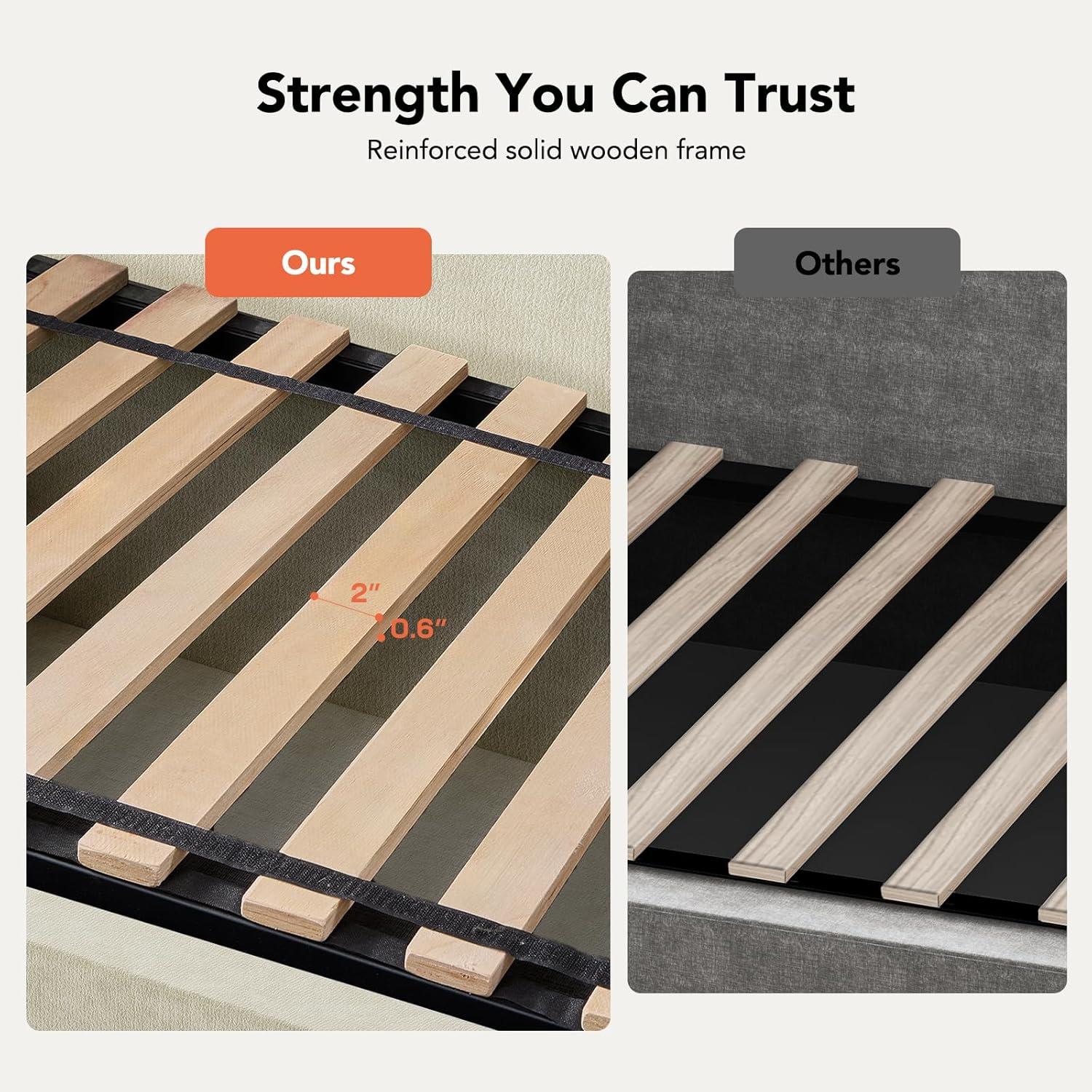 【Sturdy Construction】: The couch with pull out bed for Living Room Apartment features solid wood slats widened to 2″ and thickened to 0.6″, paired with a metal frame for enhanced stability and durability. It offers superior weight-bearing capacity, supporting up to 1,000 pounds