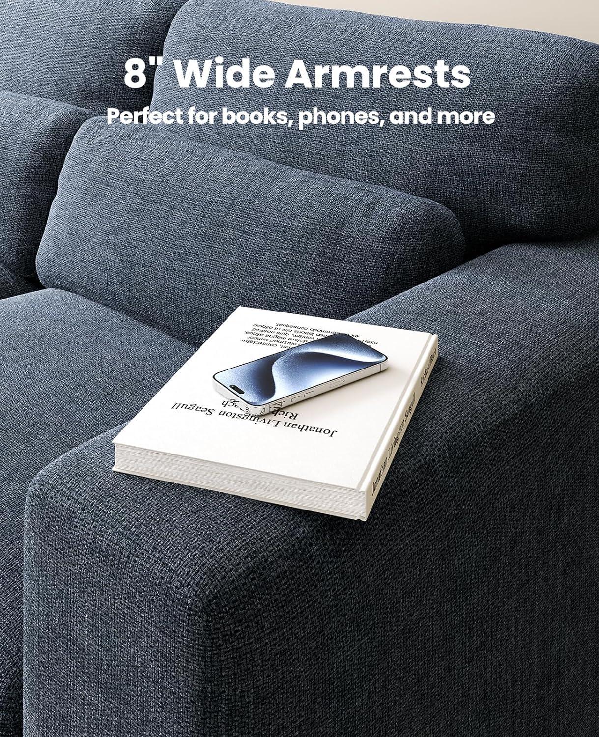 : This modern, washable sofa features 8-inch-wide armrests, conveniently storing essentials like phones, remote controls, and cups, keeping your space tidy. The thickened seat cushions provide ultimate comfort, allowing you to relax