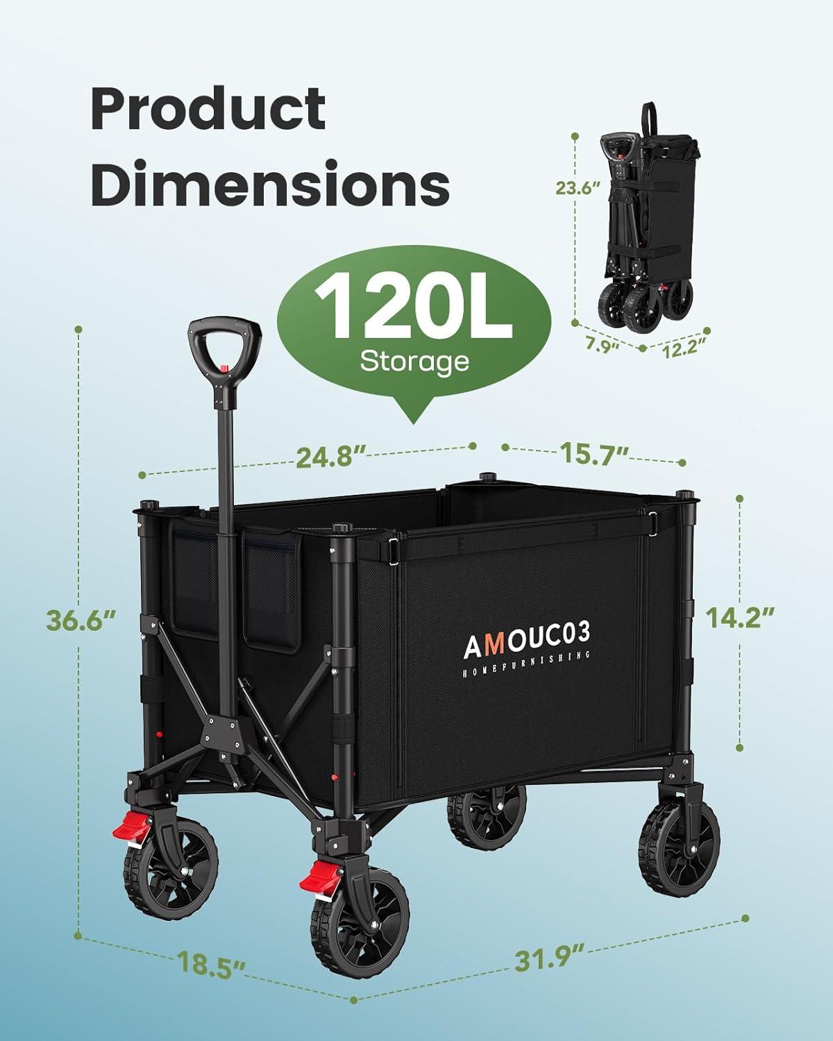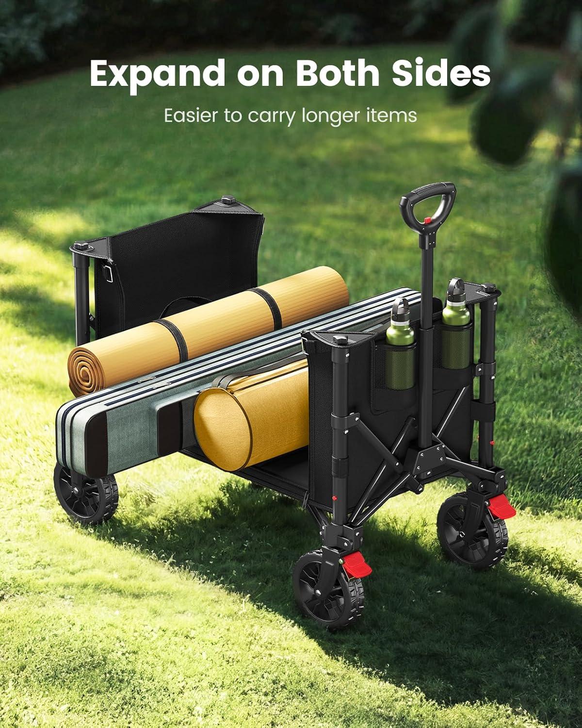 Expands for Extra Storage: The sides of the wagon cart foldable can be expanded to provide longer and wider storage space, making it easy to carry large items such as fishing gear or camping equipment. The expandable design makes the beach wagon more flexible and versatile, perfect for outdoor adventures, beach trips or daily use.