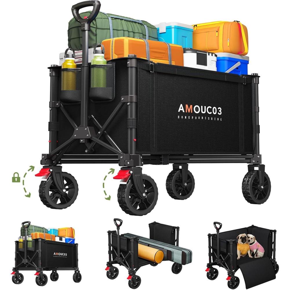 Easy to Fold and Carry: This collapsible wagon cart easily folds for compact storage, with dimensions of 30.3″ x 17.3″ x 12.3″ when expanded and just 28.3″ x 14.6″ when collapsed. Weighing only 14.7 lbs, it’s lightweight and portable, making it easy to store in your car trunk or small spaces.